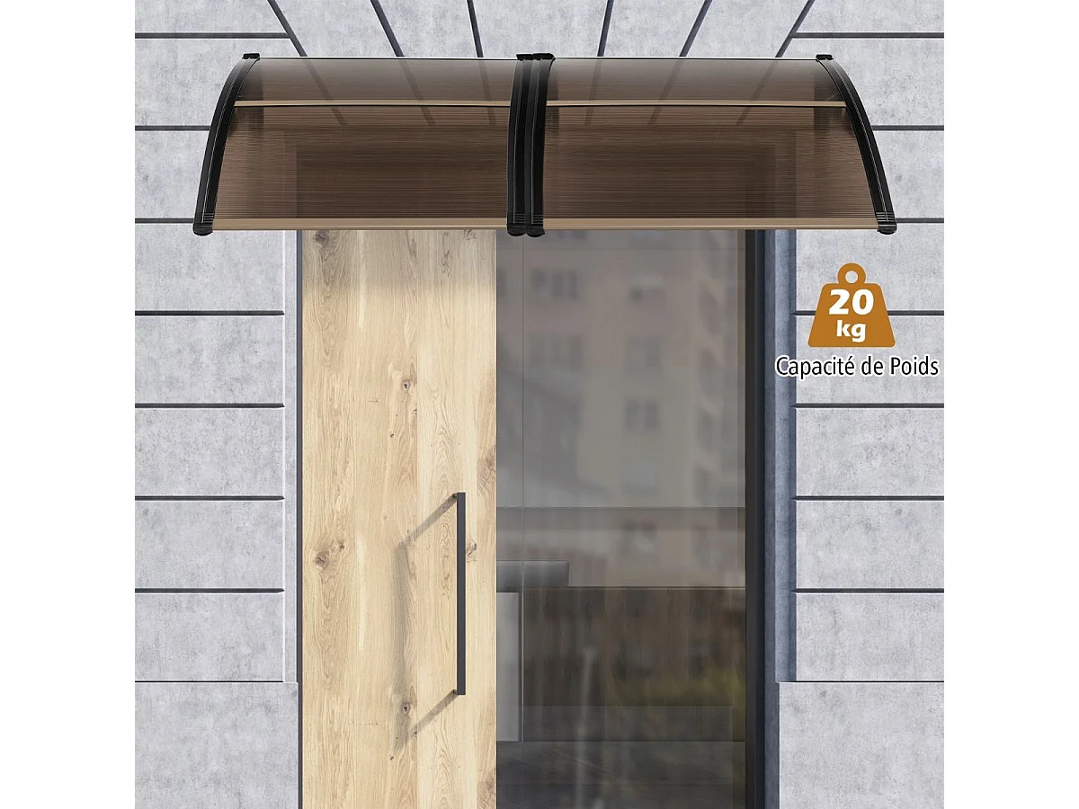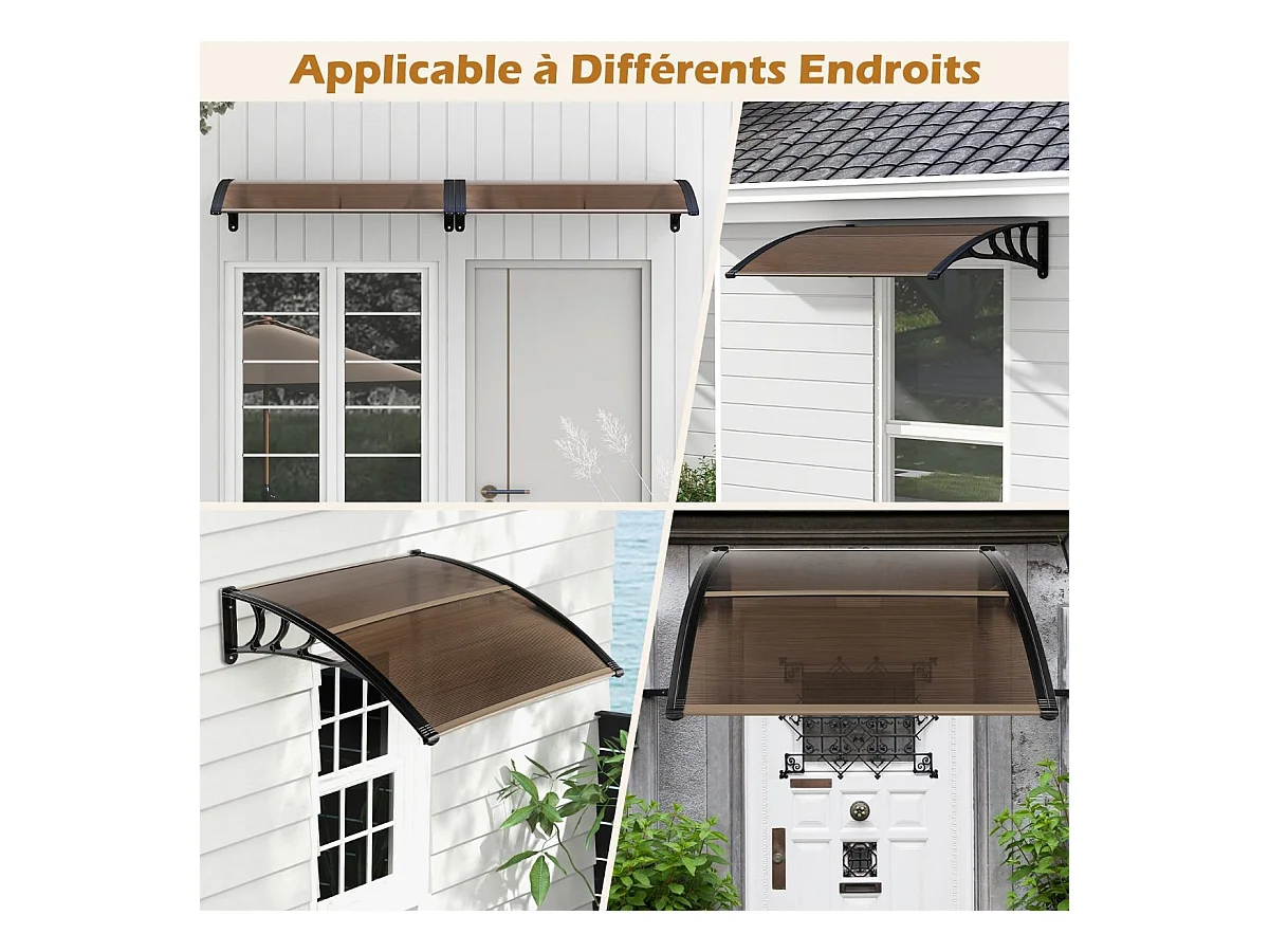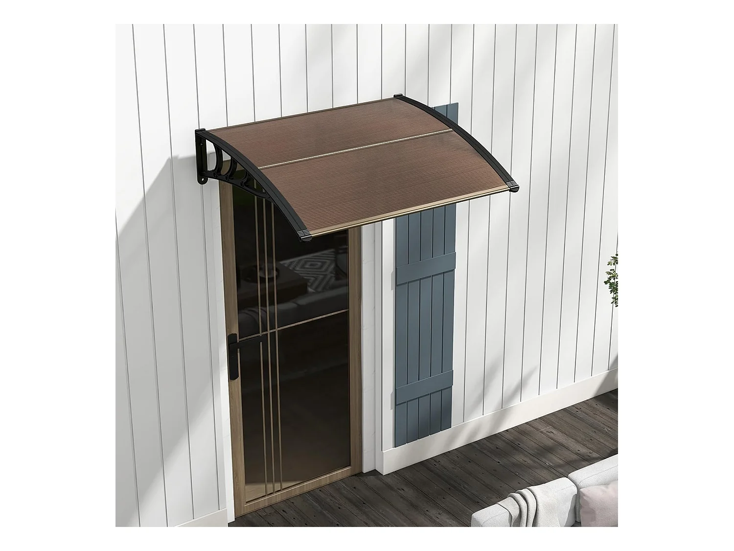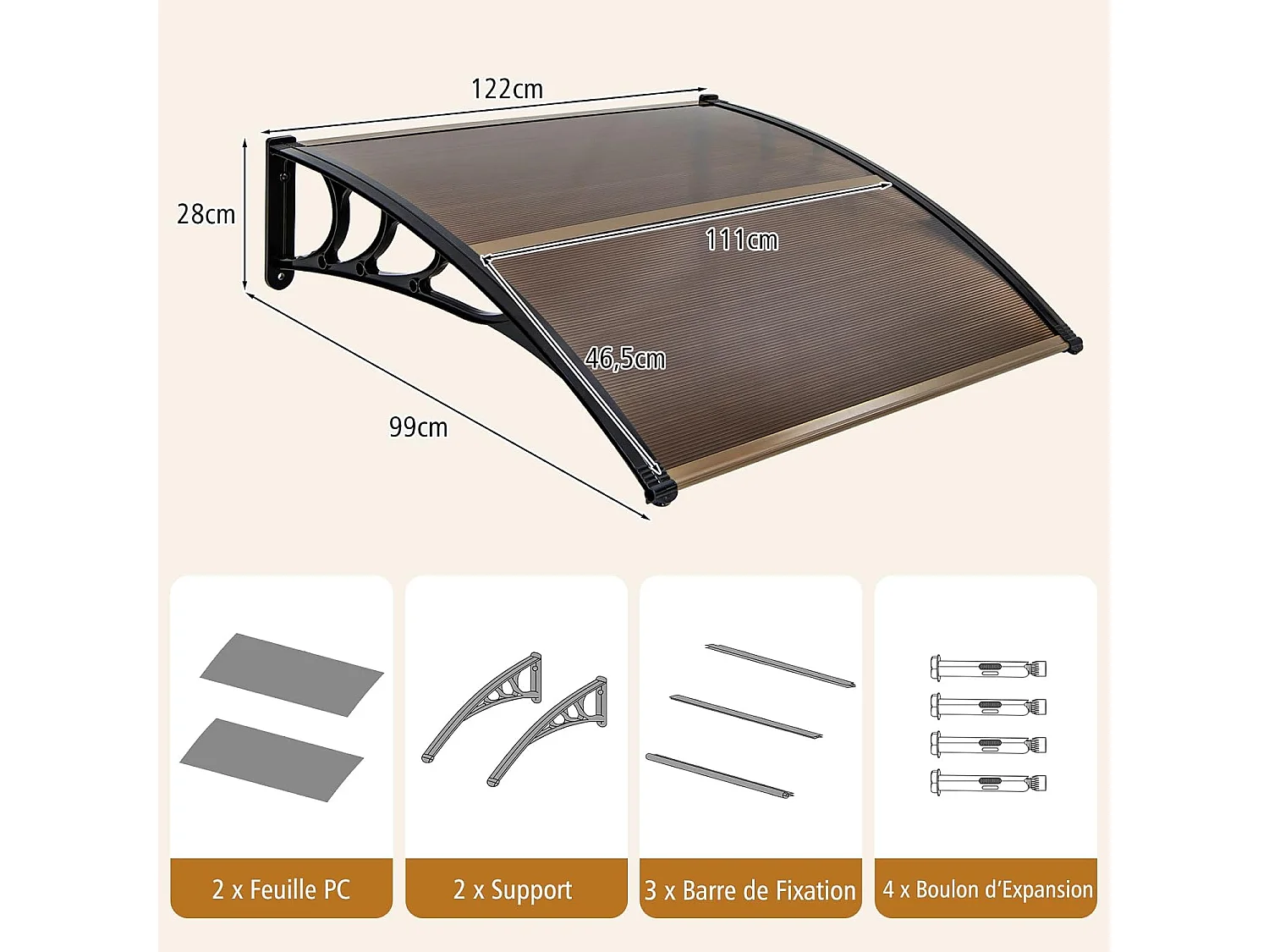 Auvent Porte d'Entree de 122 x 99 cm Protection Solaire, Marquise de Porte et Fenêtre Extérieur Plaque en Polycarbonate Protection Contre Pluie Neige Vent (Brun)
