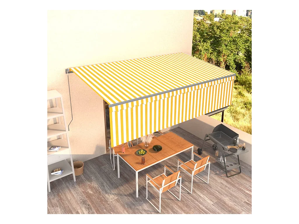 Auvent rétractableanuel avec store 5x3 Jaune et blanc