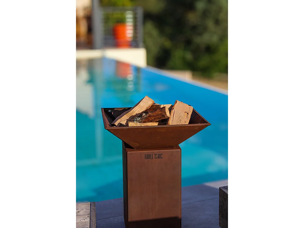 AUVERGNAT Simple Cuve Corten - Bol à feu carré - Sans rangement bois - Élégant et épuré pour une touche authentique dans votre jardin