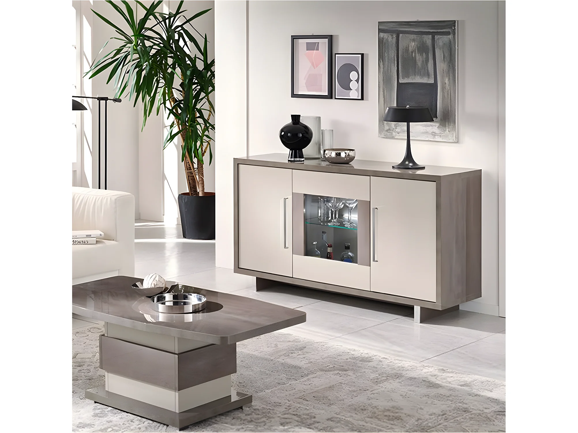 AUXANE - Buffet 3 Portes Gris Acier Metallisé et Gris Mat avec Leds