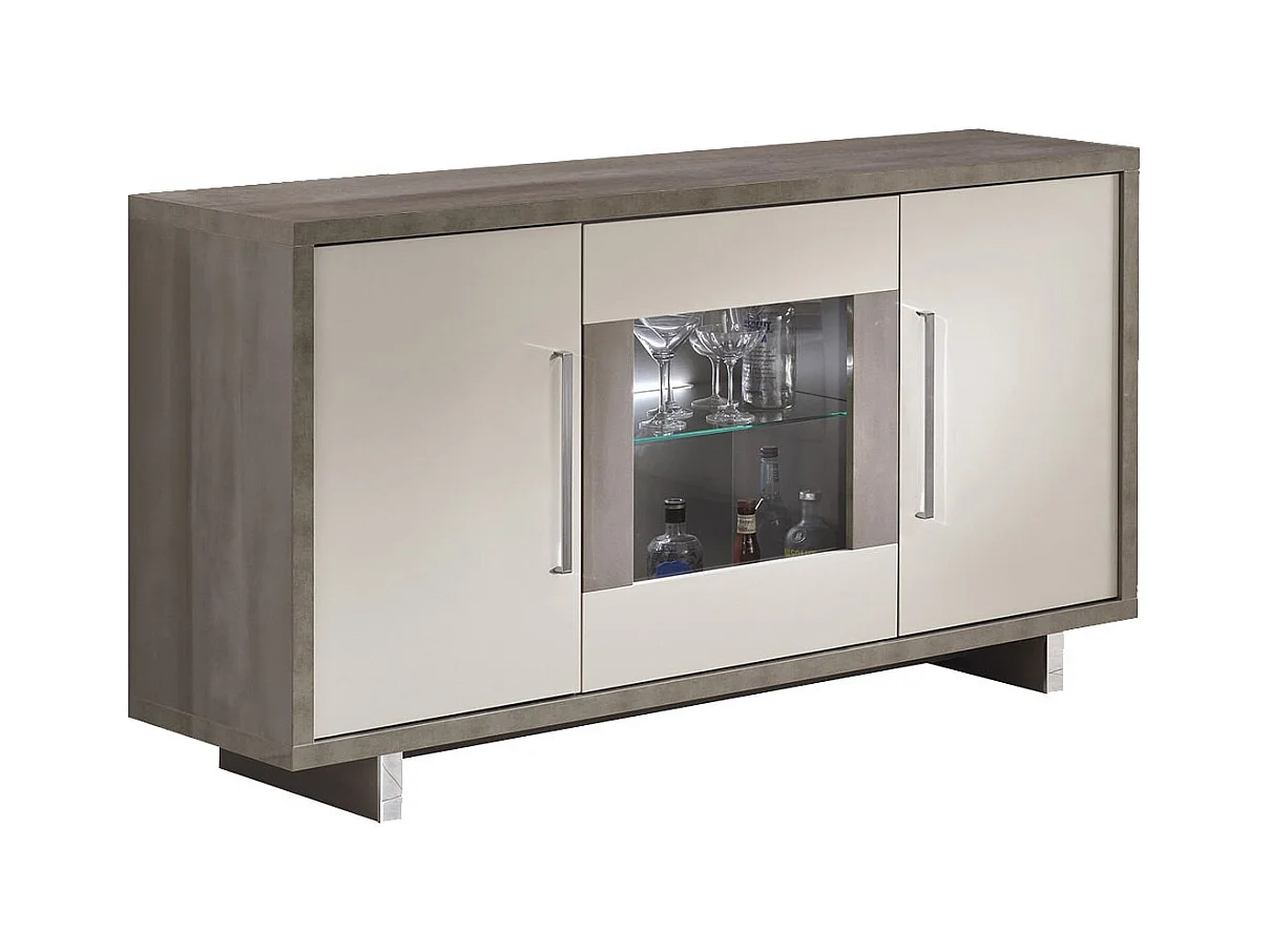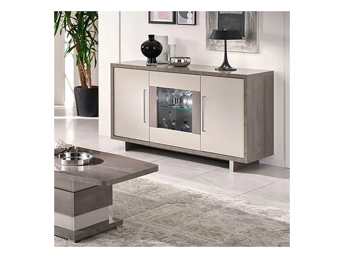 AUXANE - Ensemble Table Basse + Table d'Appoint + Buffet 3P Led Gris Metallisé et Mat