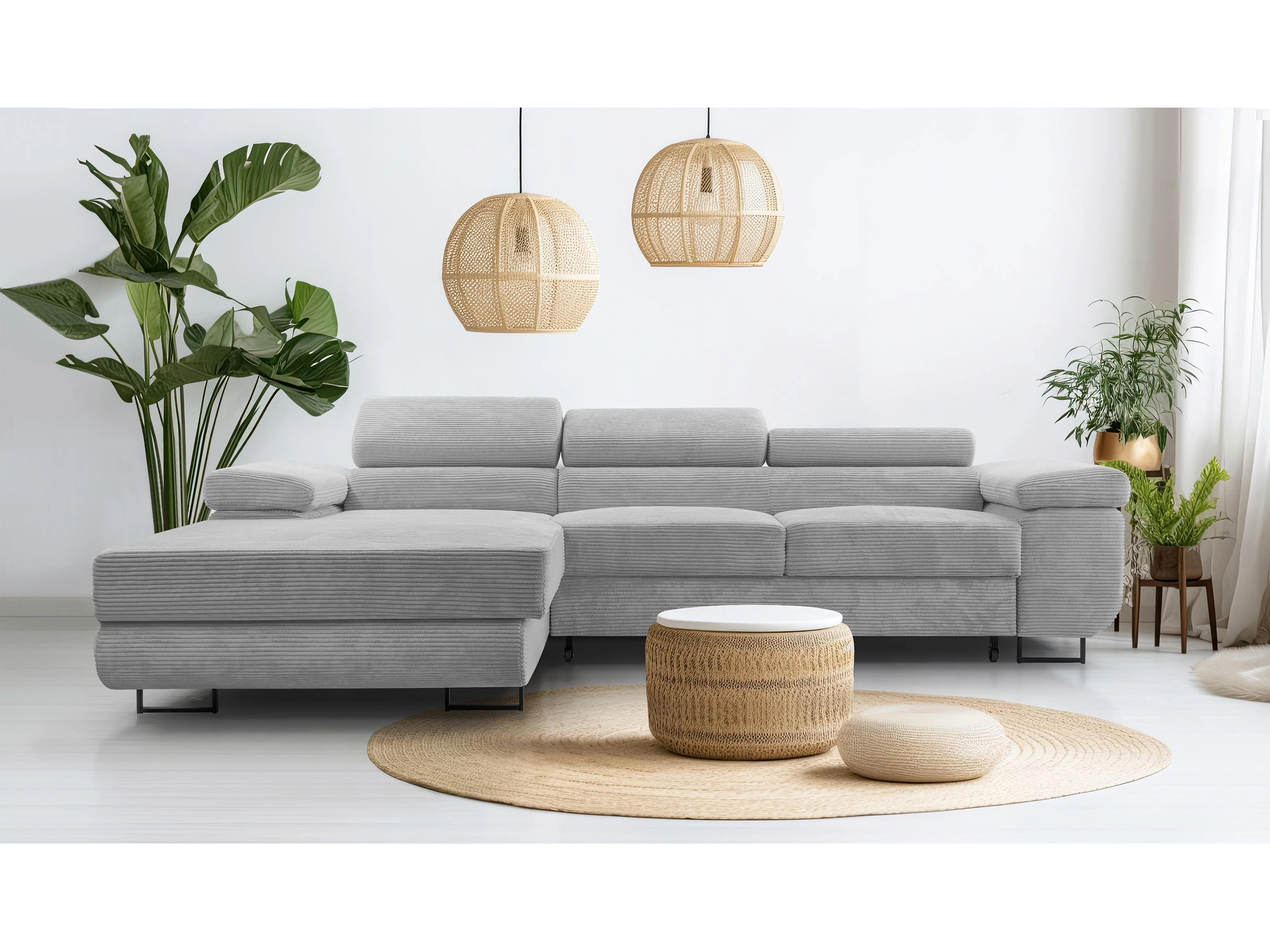 AX LIVING Canapé d’angle en velours côtelé Arborio 280 cm gris clair G