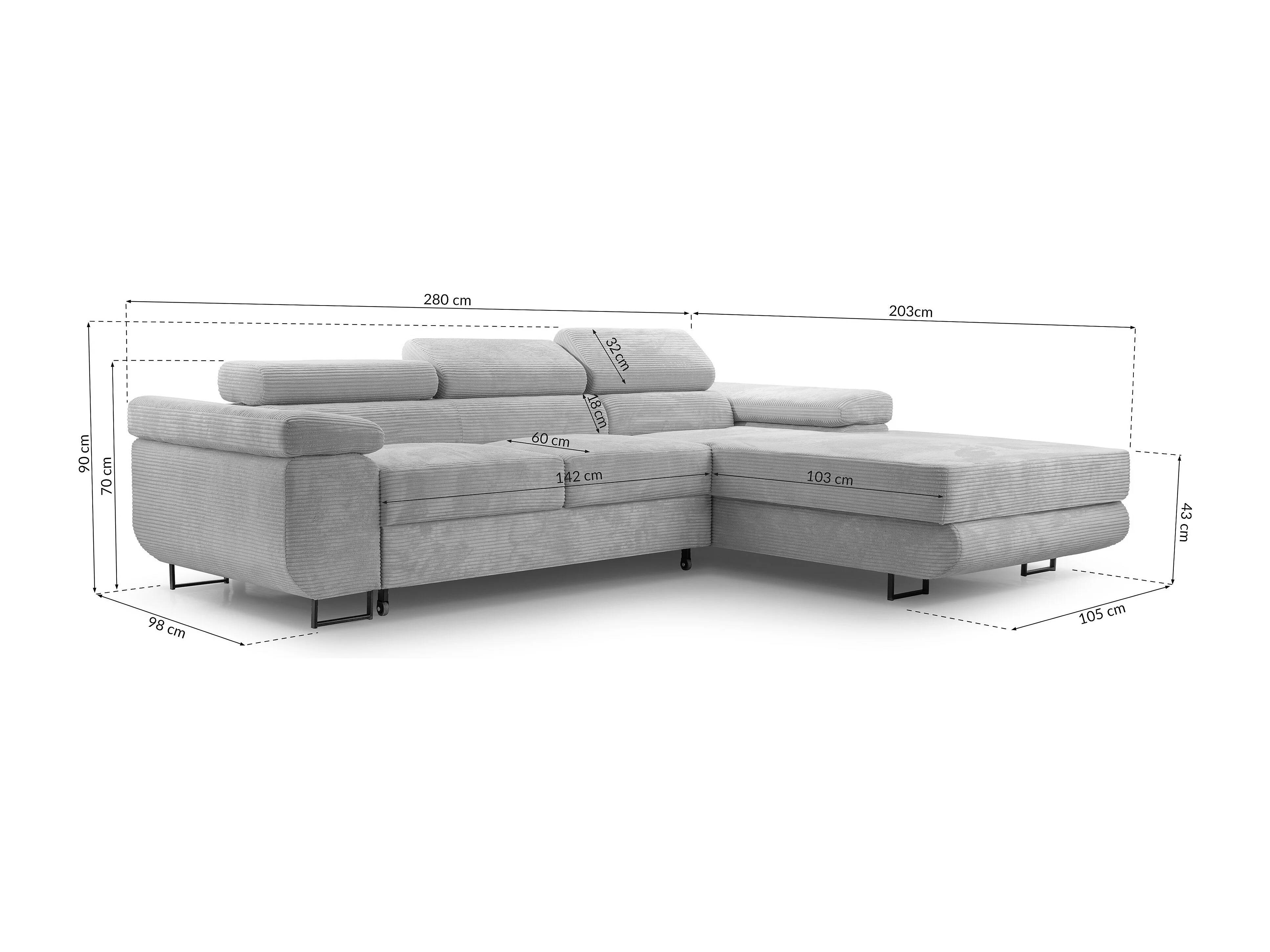 AX LIVING Canapé d’angle en velours côtelé Arborio 280 rouge brique D