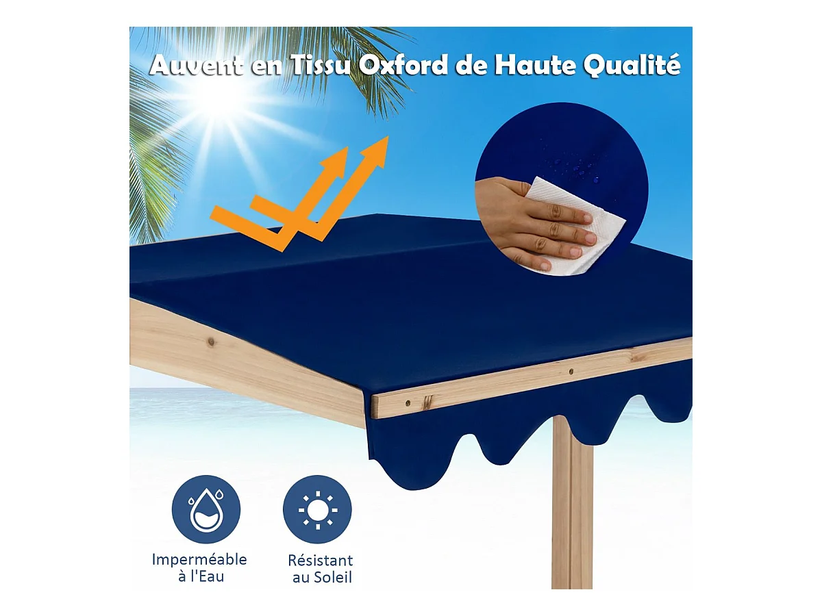 2 en 1 Bac à Sable en Bois Enfant avec Toit Amovible & 2 Bancs, Bac à Sable avec Conception sans Fond, Charge 100kg de Chaque Banc pour 1 an+, 124 x 123 x 134 cm