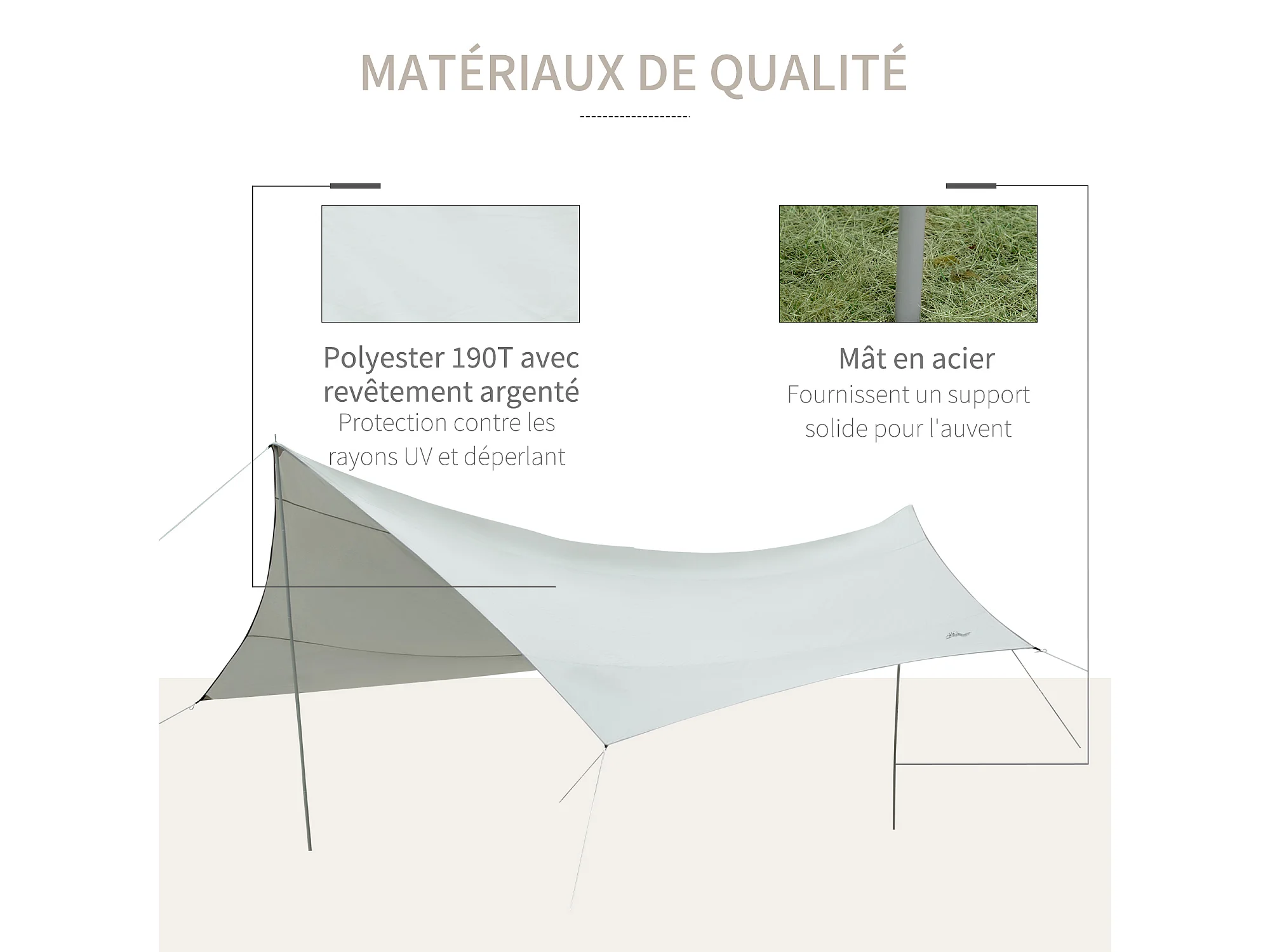 Bâche anti-pluie voile d'ombrage toile de camping 5,6L x 5,5l m polyester haute densité 190T imperméable gris