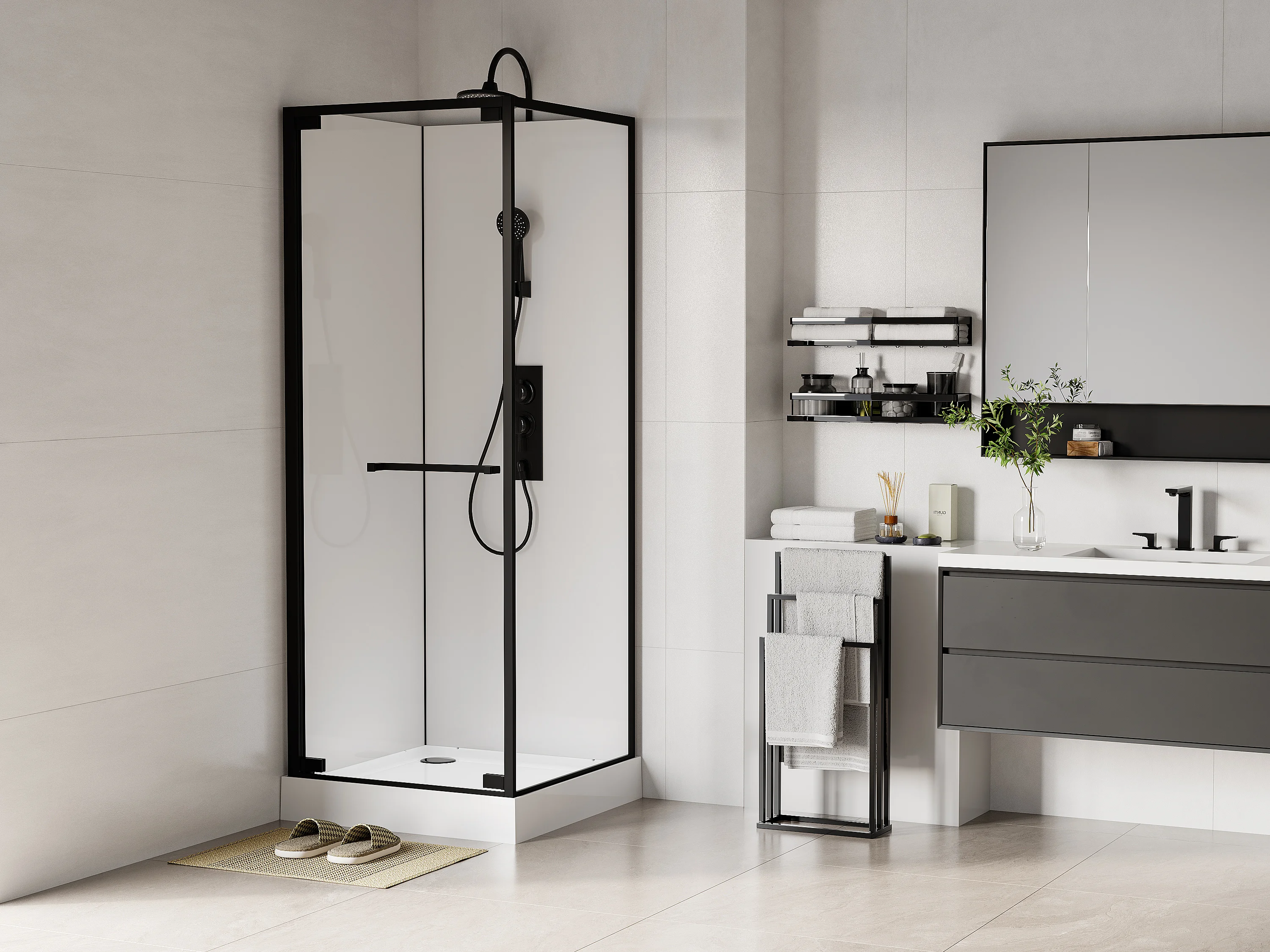 Cabine de douche installation réversible - Hauteur ajustable - Blanc et noir - L80 x l80 x H209/225 cm - BADONI