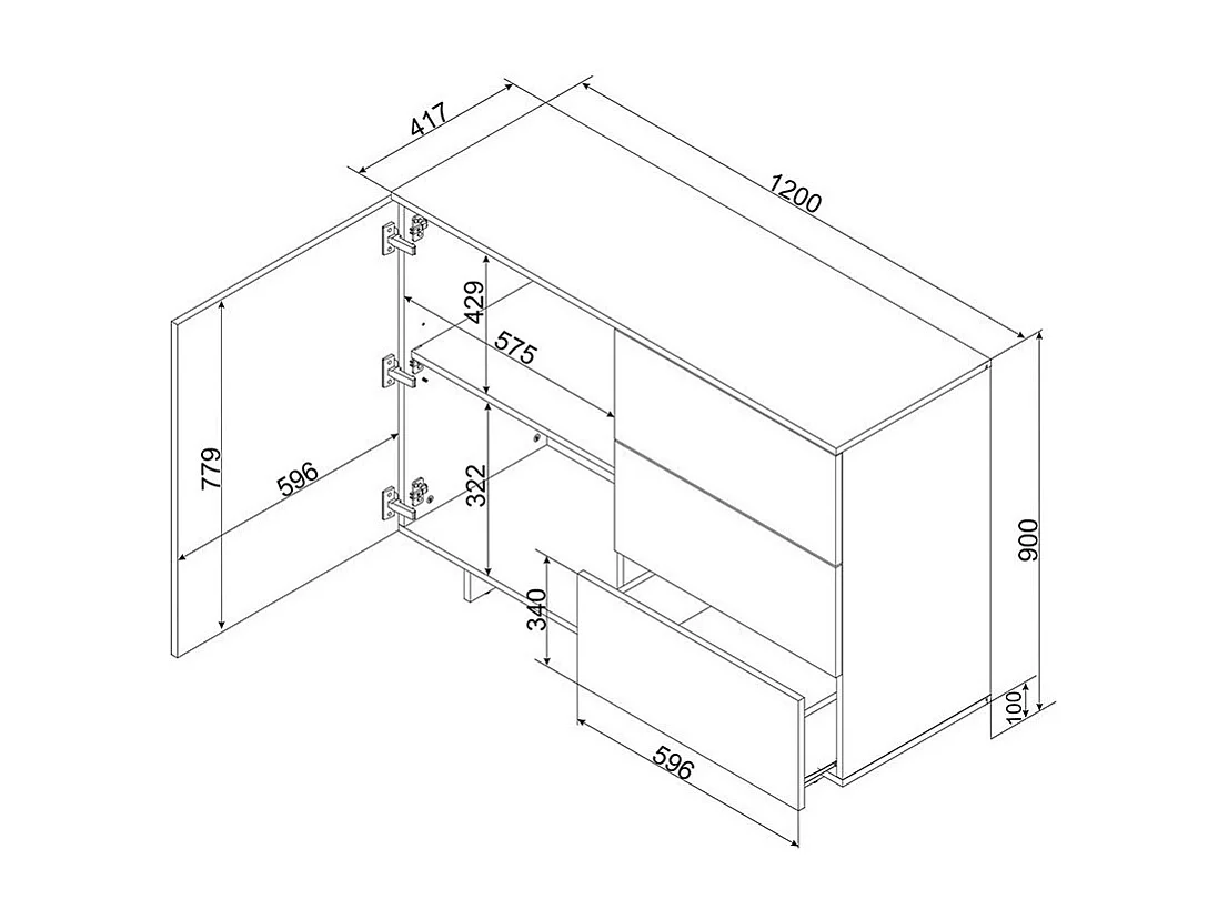 Bahut beige 1 porte 3 tiroirs - 120cm Jude