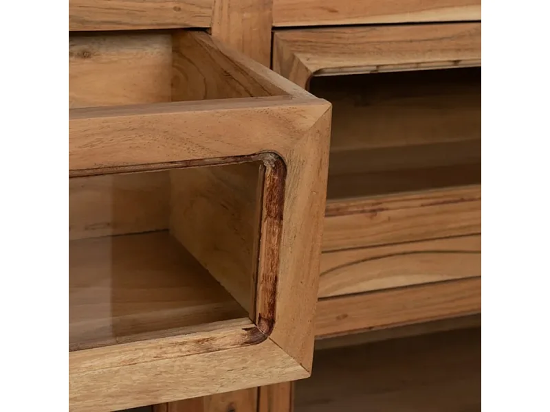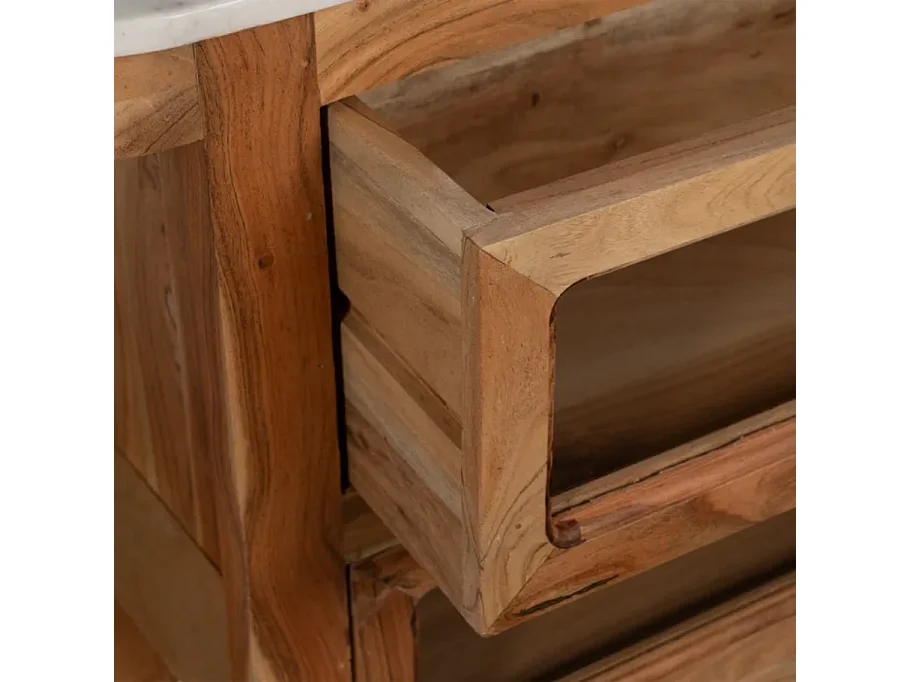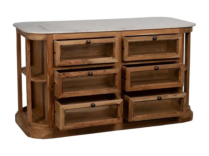 Bahut bois de manguier avec plateau marbre blanc et 6 tiroirs CYPRÉNA