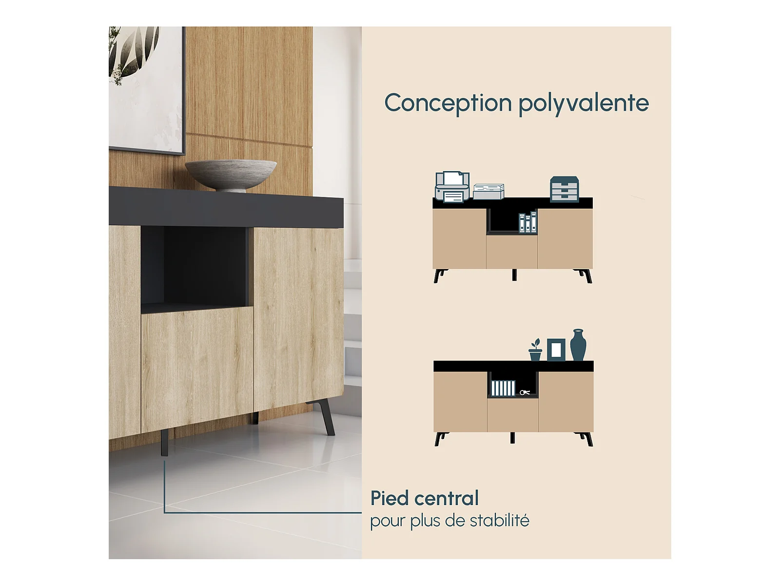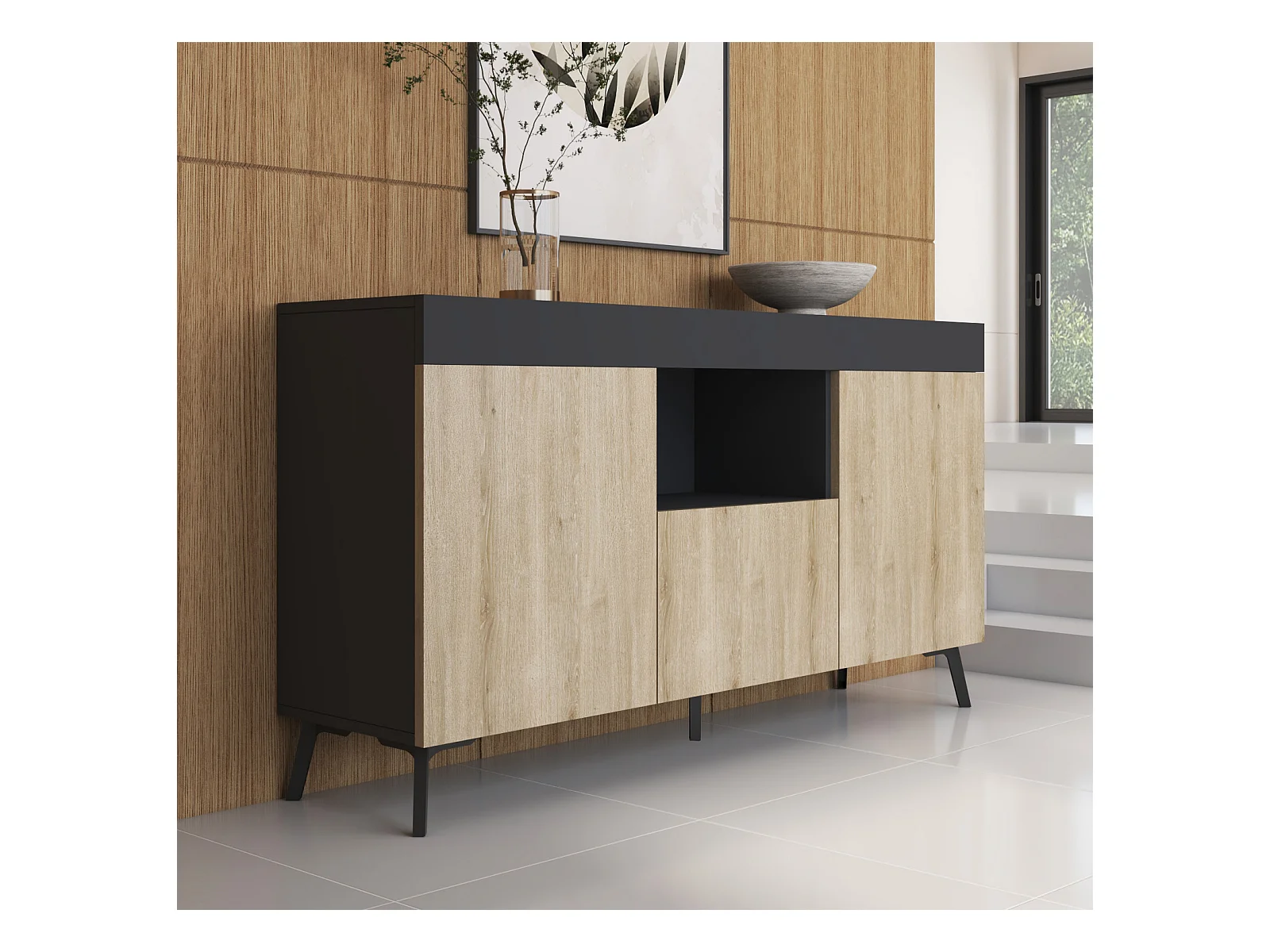 Bahut Buffet pour Salon Salle à manger en Sonoma et Noir 140x40x80cm Roque