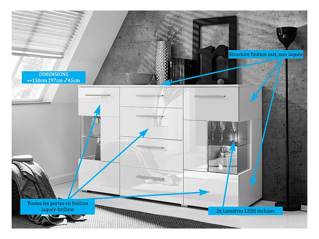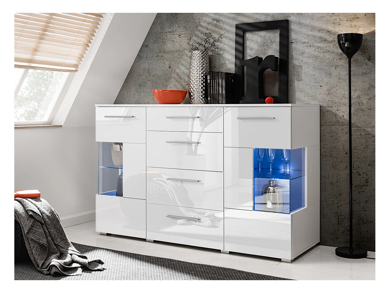 Bahut buffet profond CRYSTAL laqué blanc LED