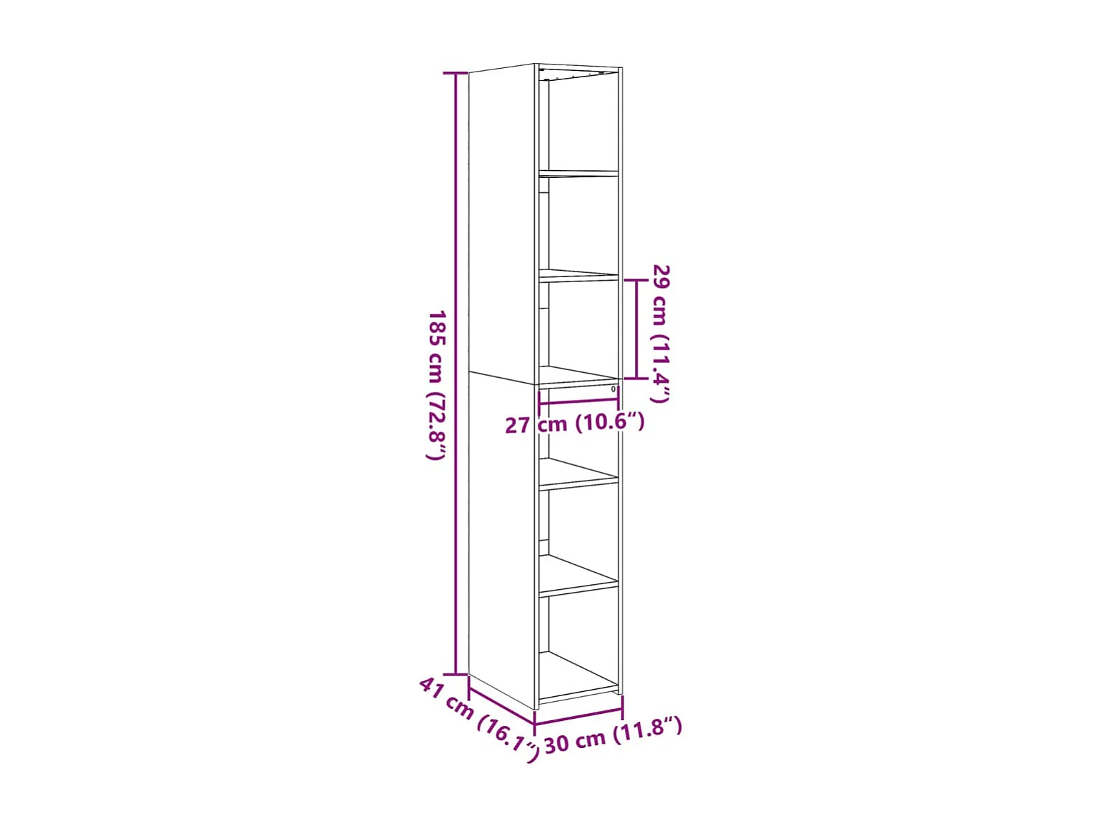 bahut commode armoire bois marron 30 x 41 x 185 cm 02_0035169