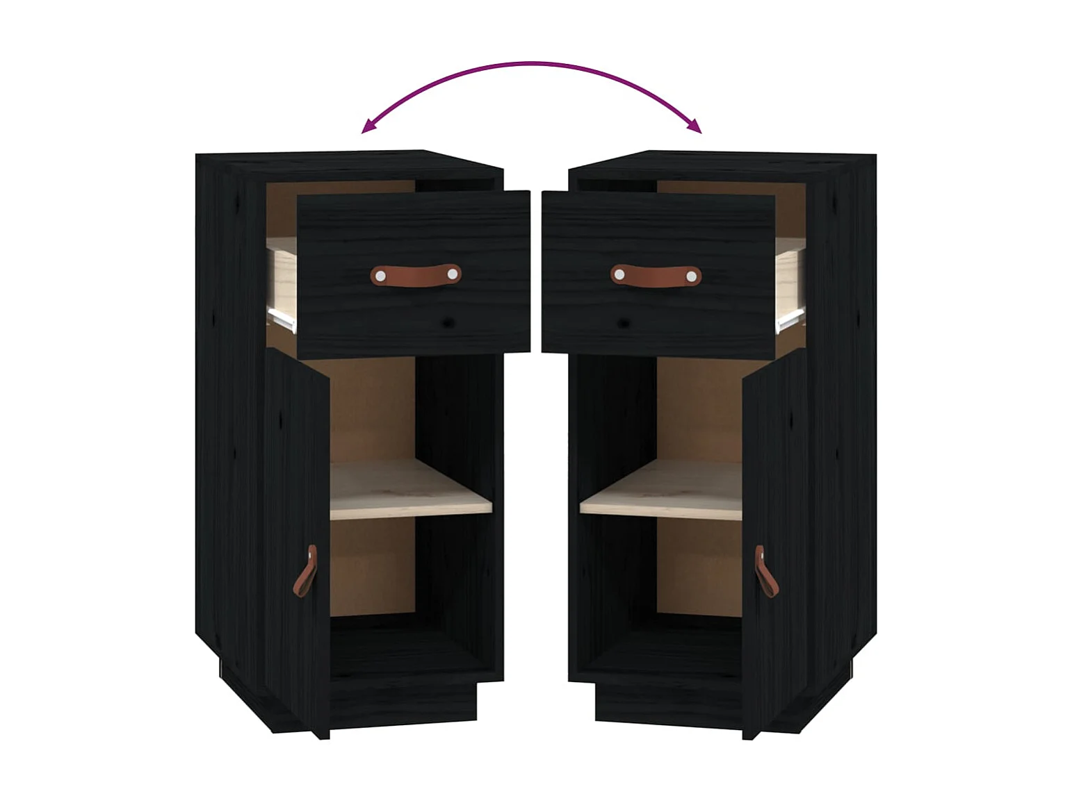 Buffets 2 pcs Noir 40x35x80 cm Bois massif de pin EGER15413