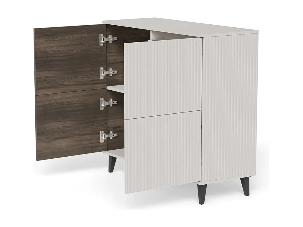 Bahut contemporain 100 cm 2 portes aspect noyer et beige PUMP