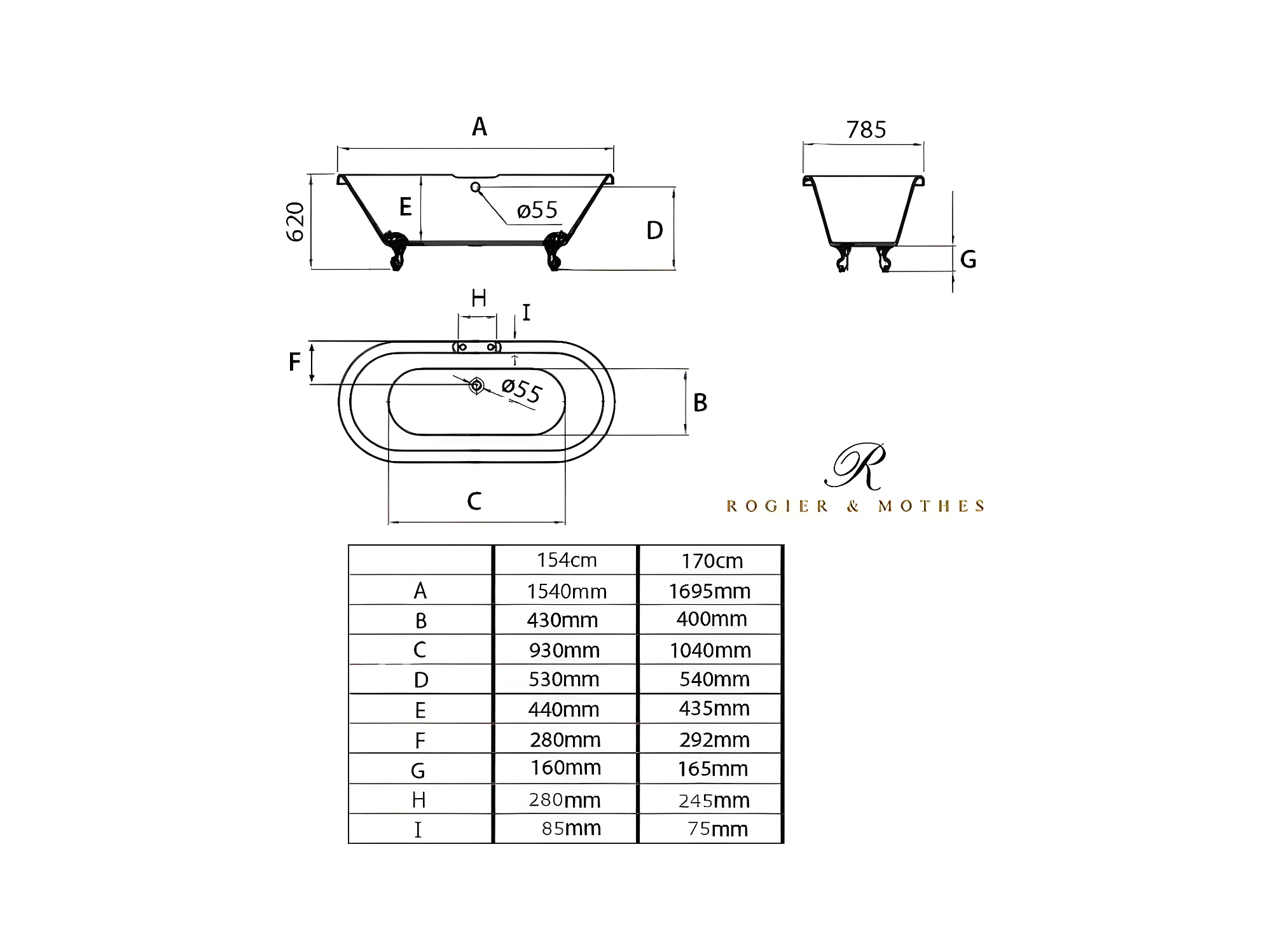 Baignoire ancienne rétro sur pieds CHELSEA Blanche 170 cm Pieds d'Aigle Dorés