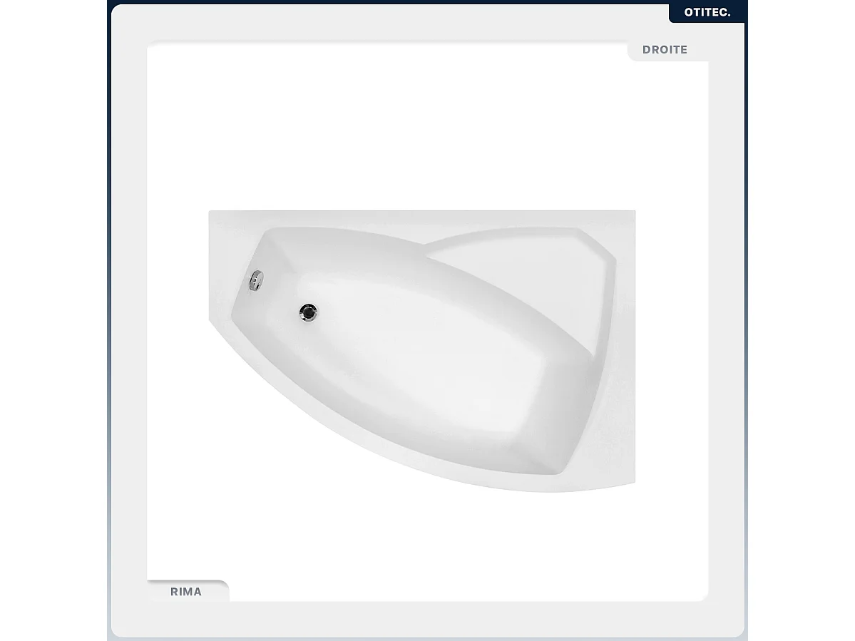 Baignoire asymétrique - 140 x 90 cm - Droite - avec Habillage - Pieds - Repose-tête - Vidage Chrome - RIMA