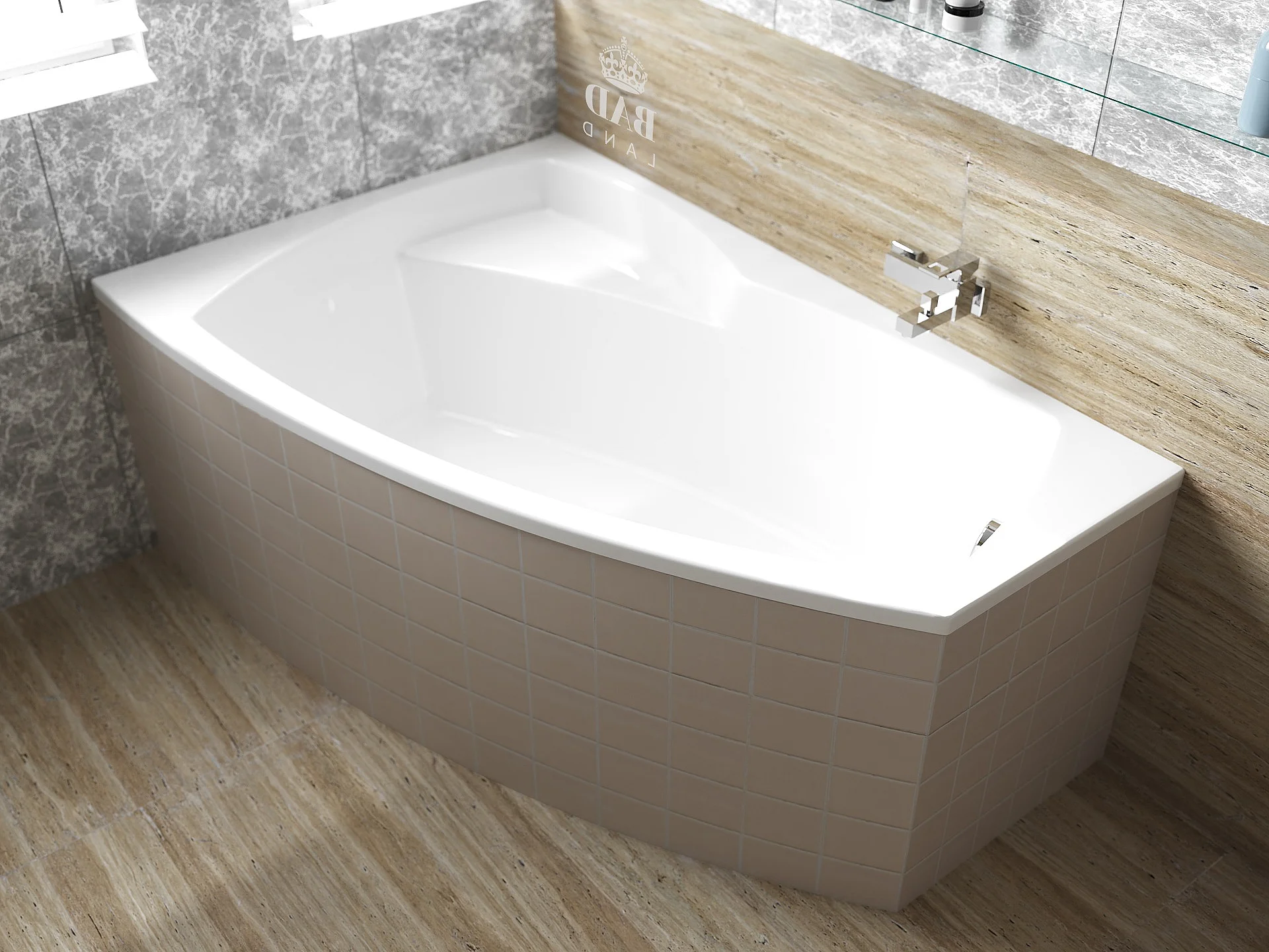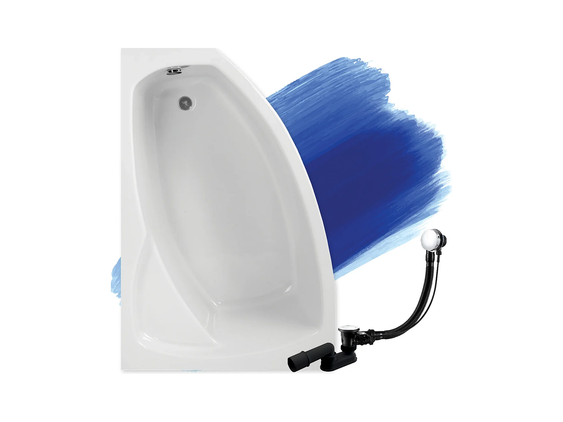 Baignoire asymétrique 140x80 Gauche FRIDA acrylique blanc, sans Habillage + Pieds + Vidage à chromé
