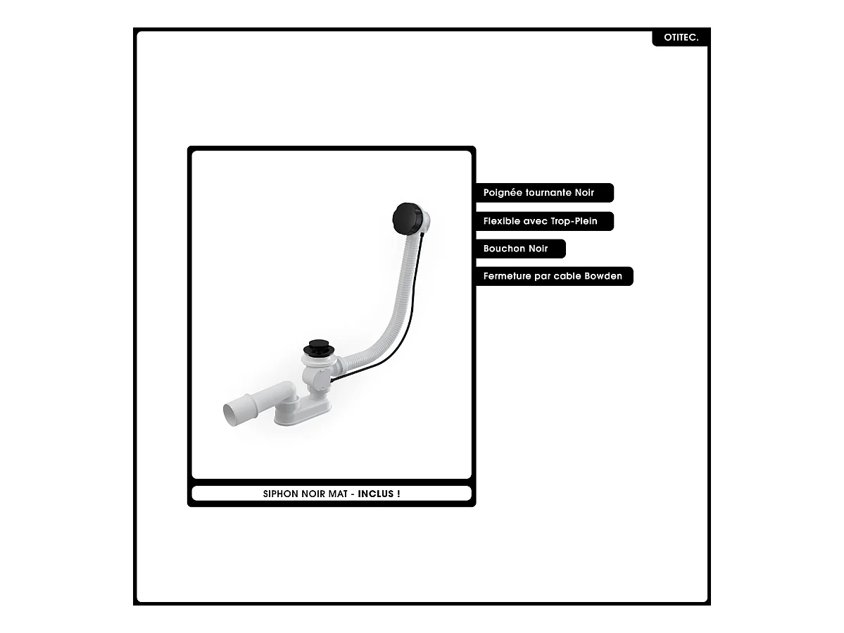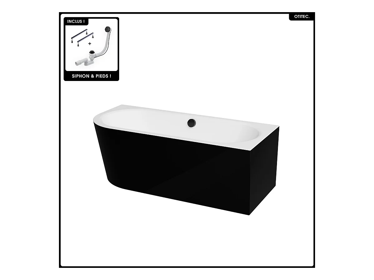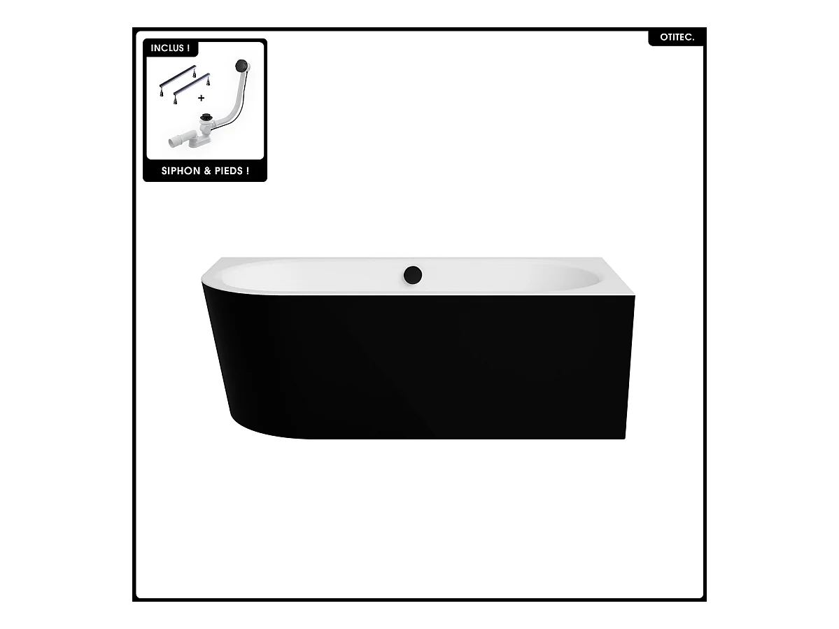 Baignoire asymétrique - 150 x 75 cm - Droite - Siphon Noir & Pieds - INCLUS - NOIR - AVITA A-LINE