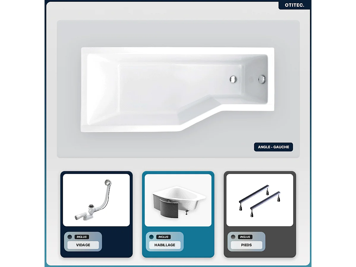 Baignoire asymétrique - 150 x 75 cm - Gauche - avec Habillage - Pieds - Vidage Chrome - INTEGRA