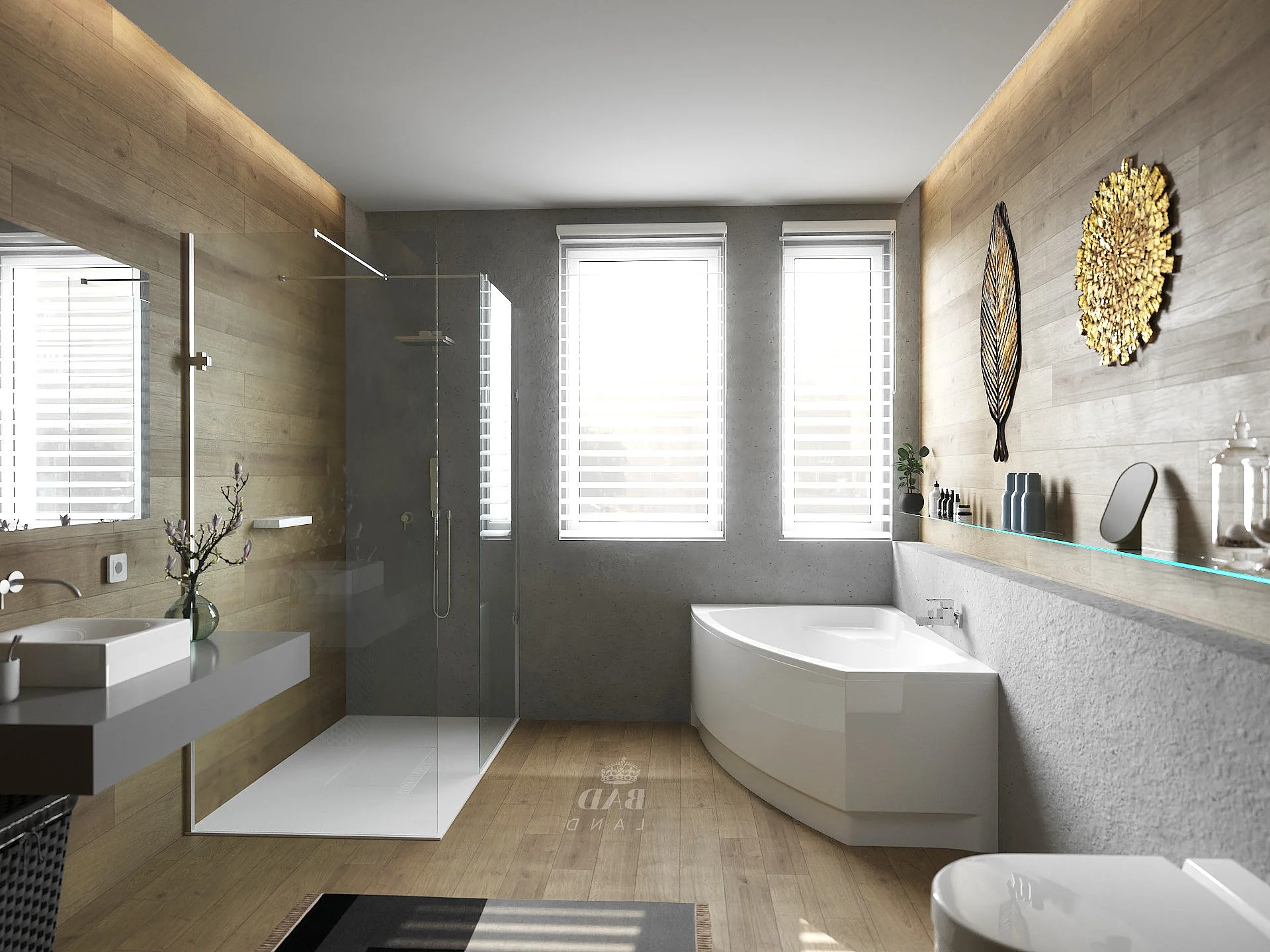 Baignoire asymétrique 150x100 Gauche FRIDA acrylique blanc + avec Tablier + Pieds + Vidage à chromé