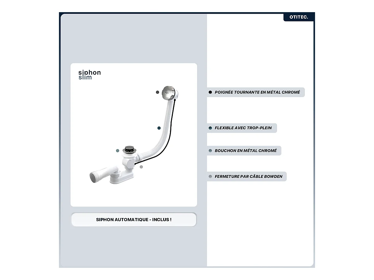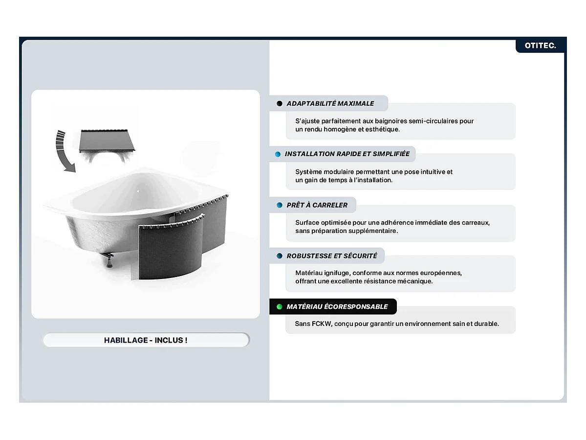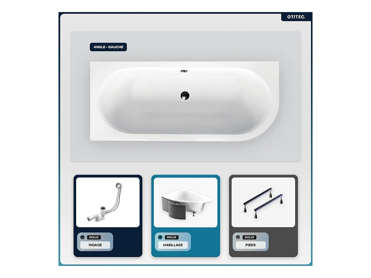 Baignoire asymétrique - 160 x 75 cm - Gauche - avec Habillage - Pieds - Vidage Chrome - AVITA