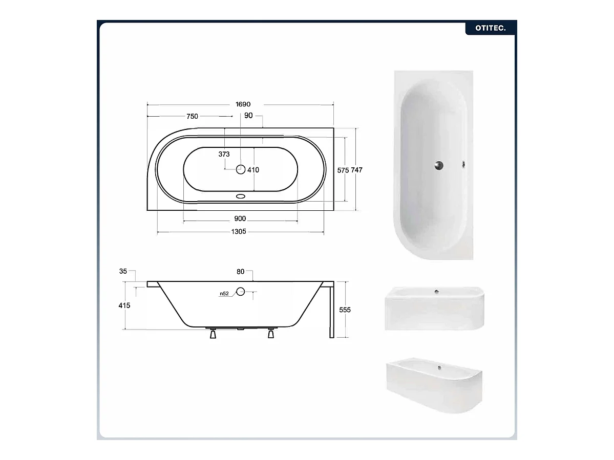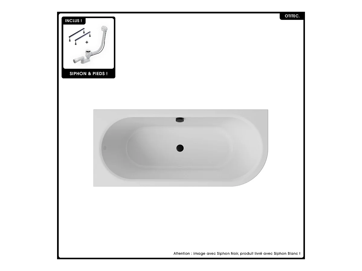 Baignoire asymétrique - 170 x 75 cm - Gauche - Siphon Blanc & Pieds - INCLUS - NOIR - AVITA A-LINE