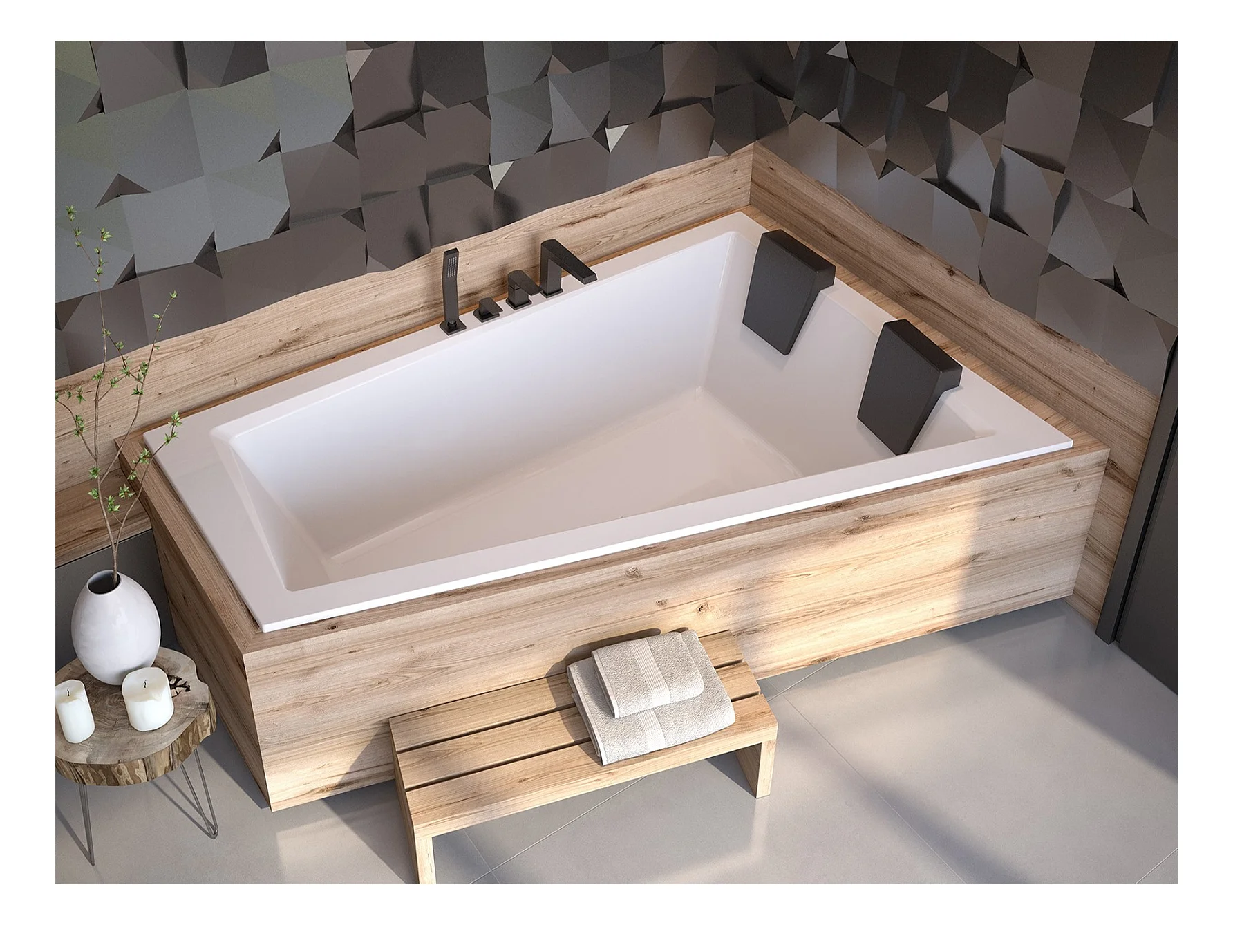 Baignoire asymétrique 170x125 Droite INTIMA SLIM acrylique blanc, sans Habillage + Repose Tête + Pieds + Vidage à chromé