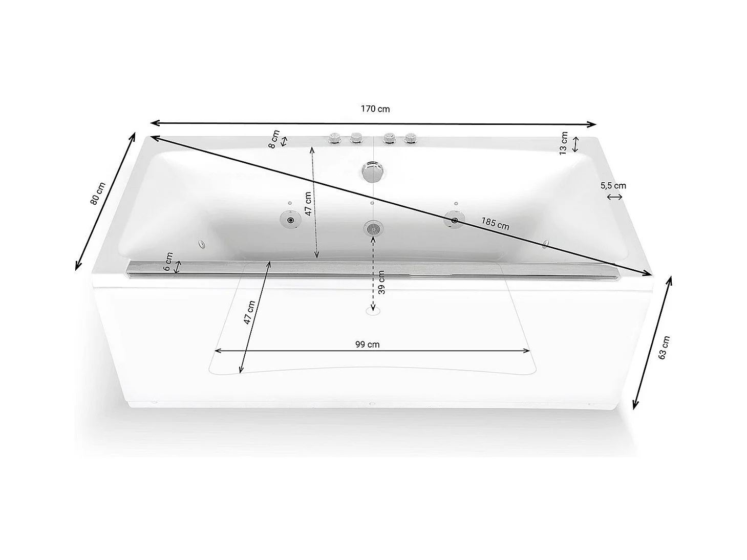 Baignoire Balnéo Maya Wave 170 x80 x63 cm, by SPALINA