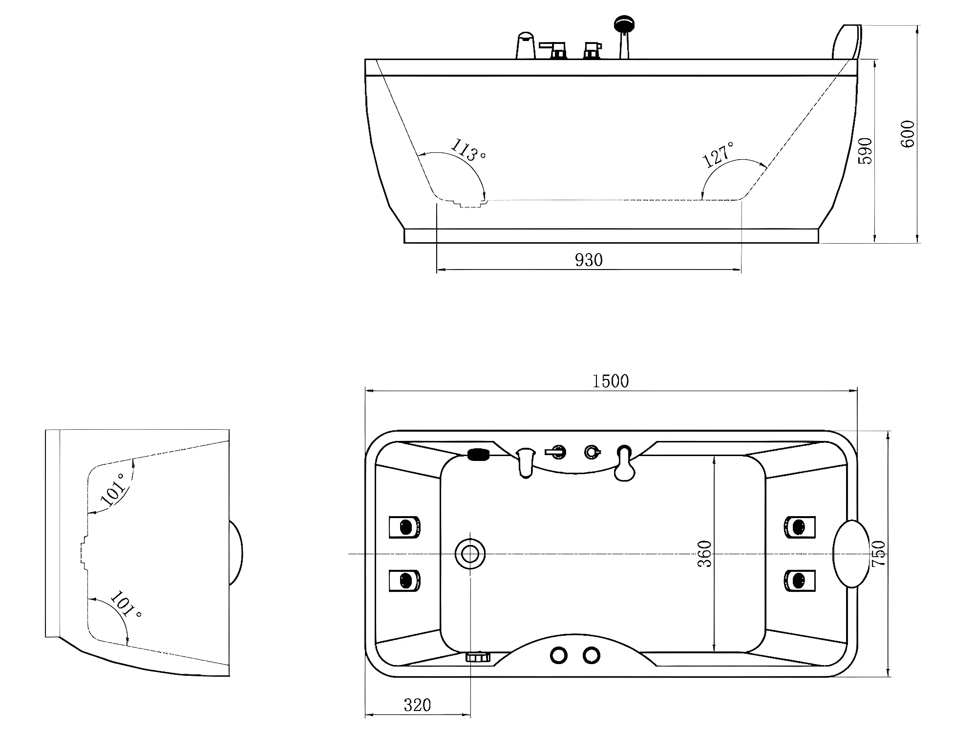 Baignoire balnéo blanche - 1 place - 140L - 150 x 75 x 54,5 cm - Angle gauche - GAVINO