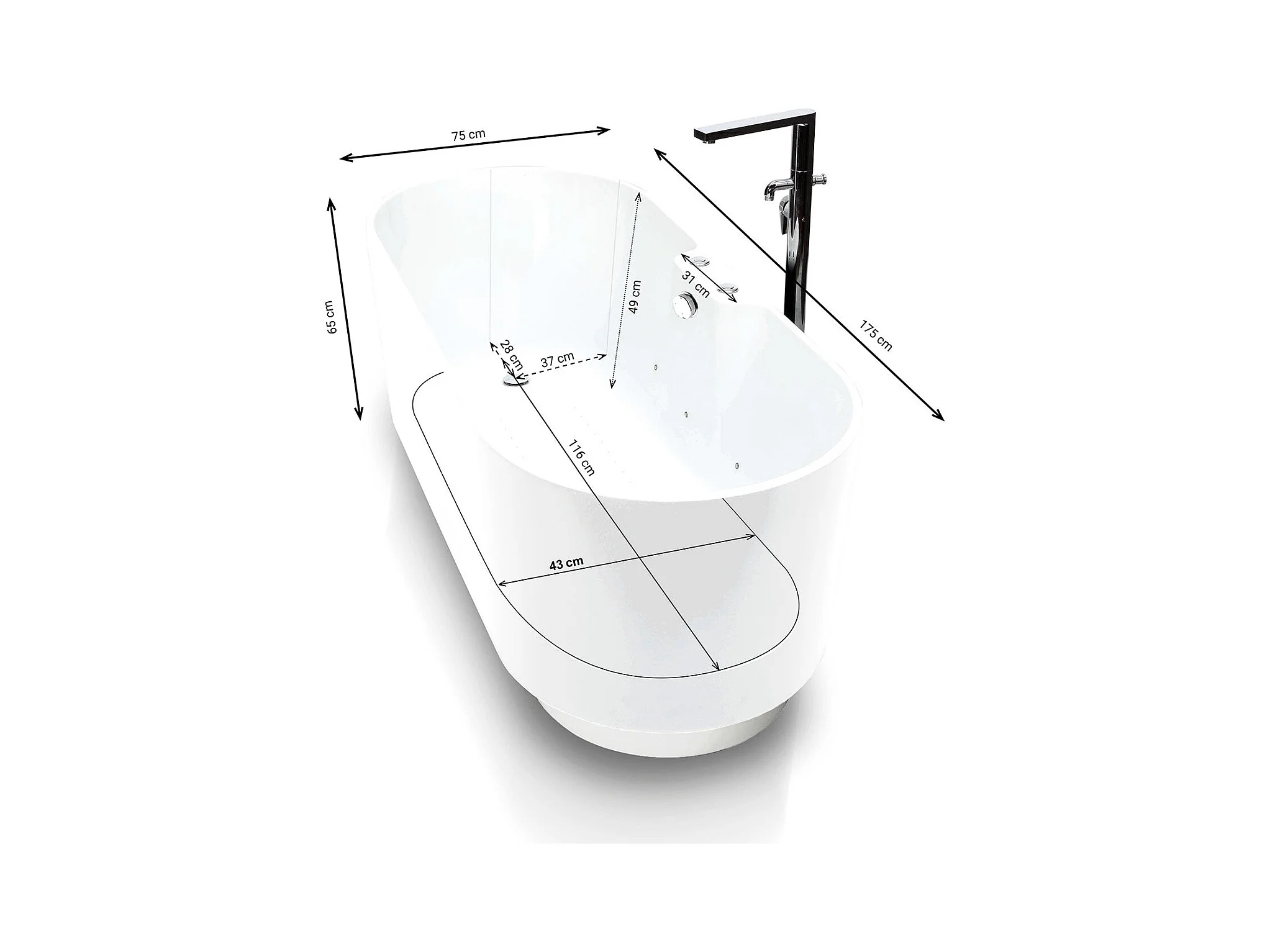 Baignoire Balnéo Ukio white Bulle 175 x75 x65 cm, by SPALINA