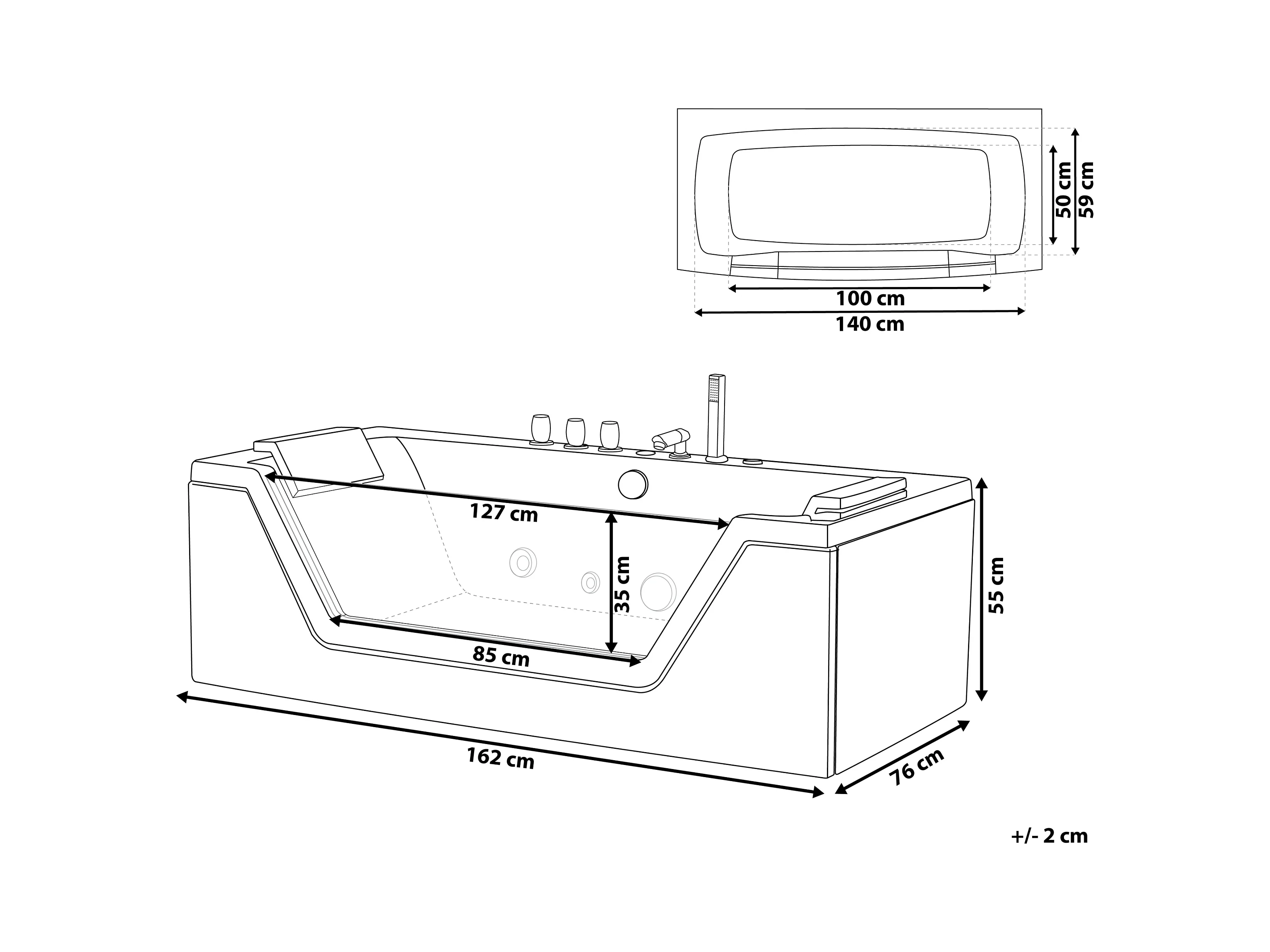 Baignoire d'angle à remous avec LED SAMANA 162 x 76 cm Noir
