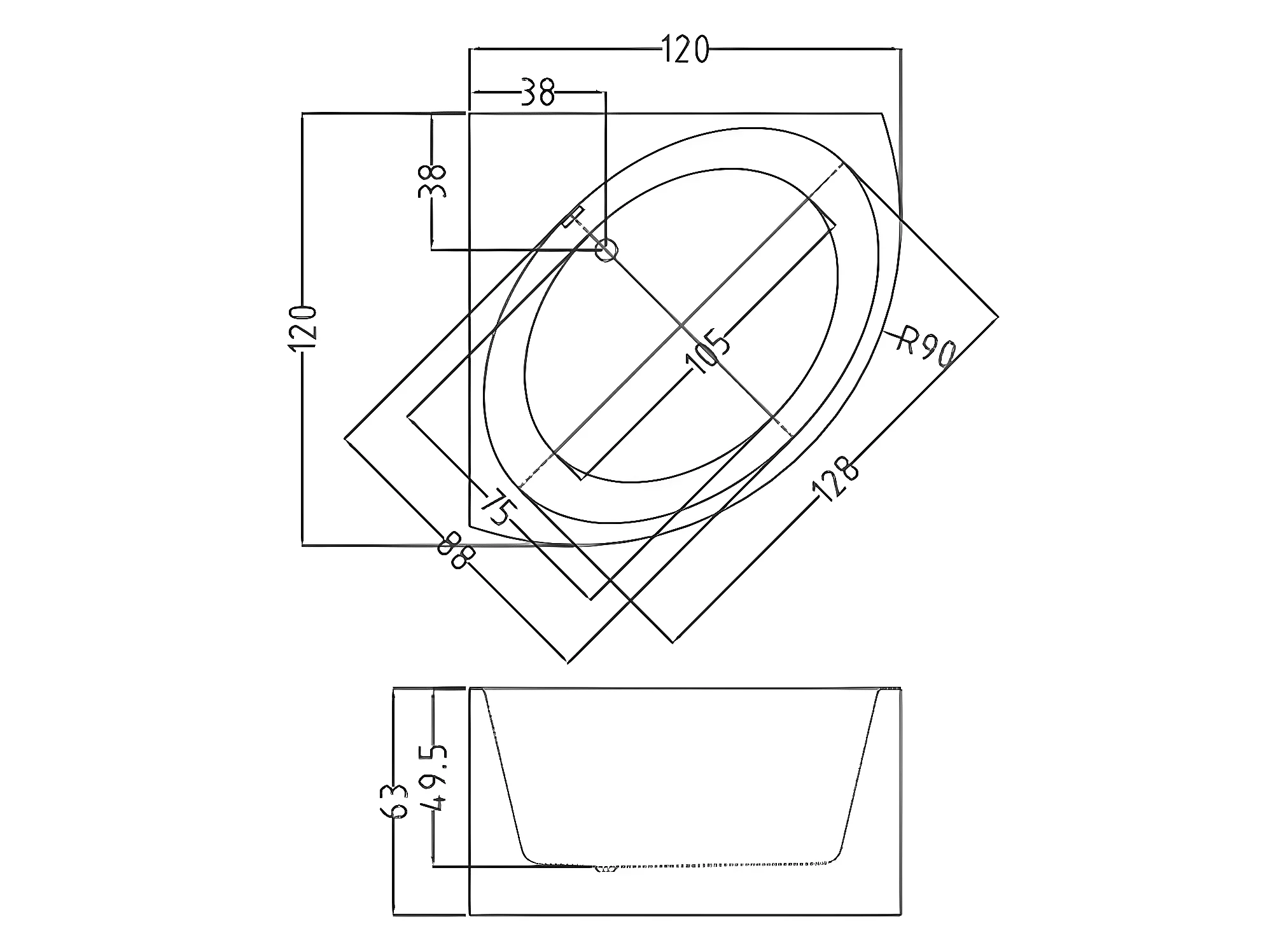 Baignoire d'angle - 198 L - 120 x 120 x 63 cm - Blanche - Acrylique - COBITIS