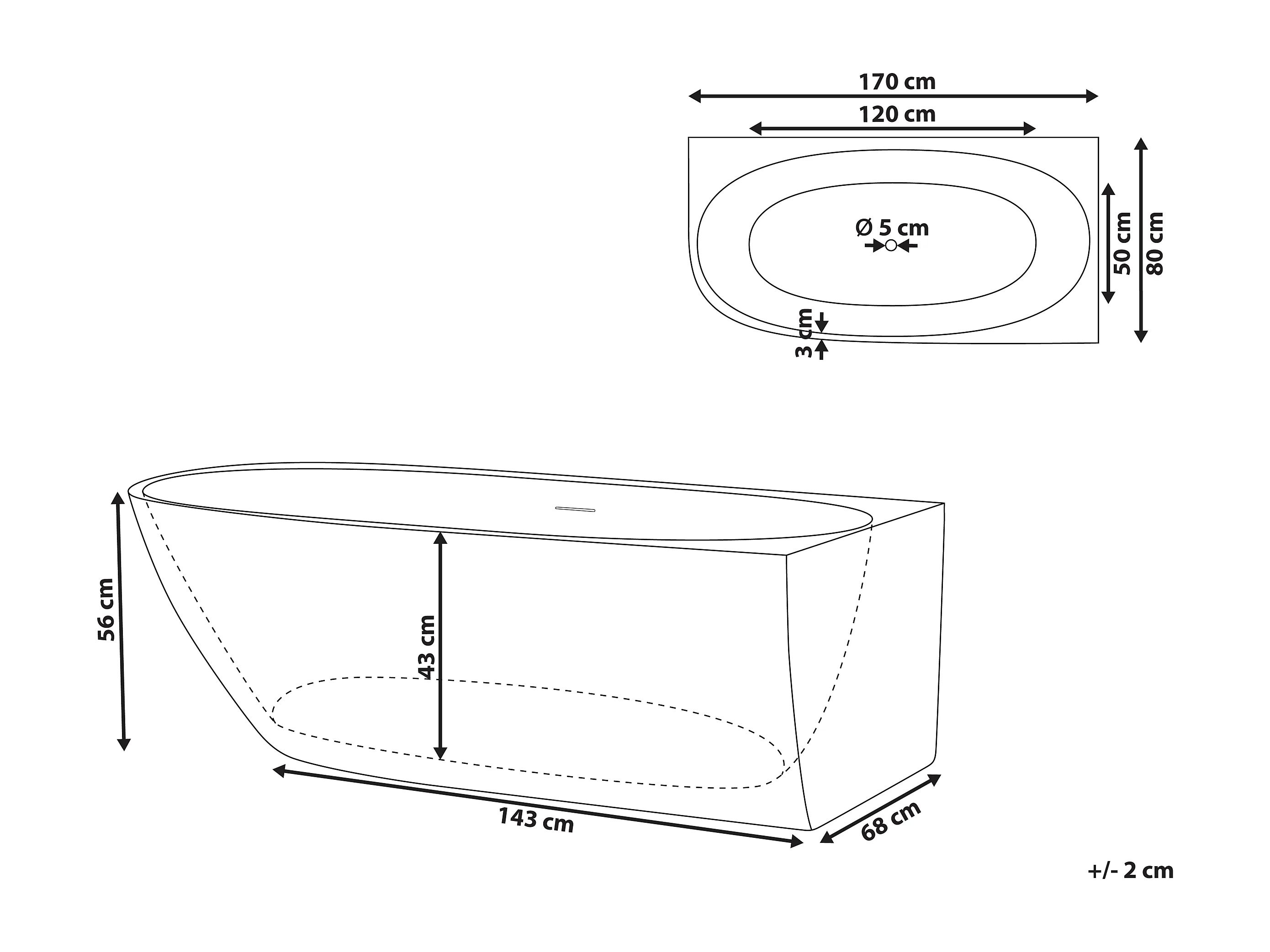 Baignoire d'angle PARNAIBA Côté droite 170 x 80 cm Blanc