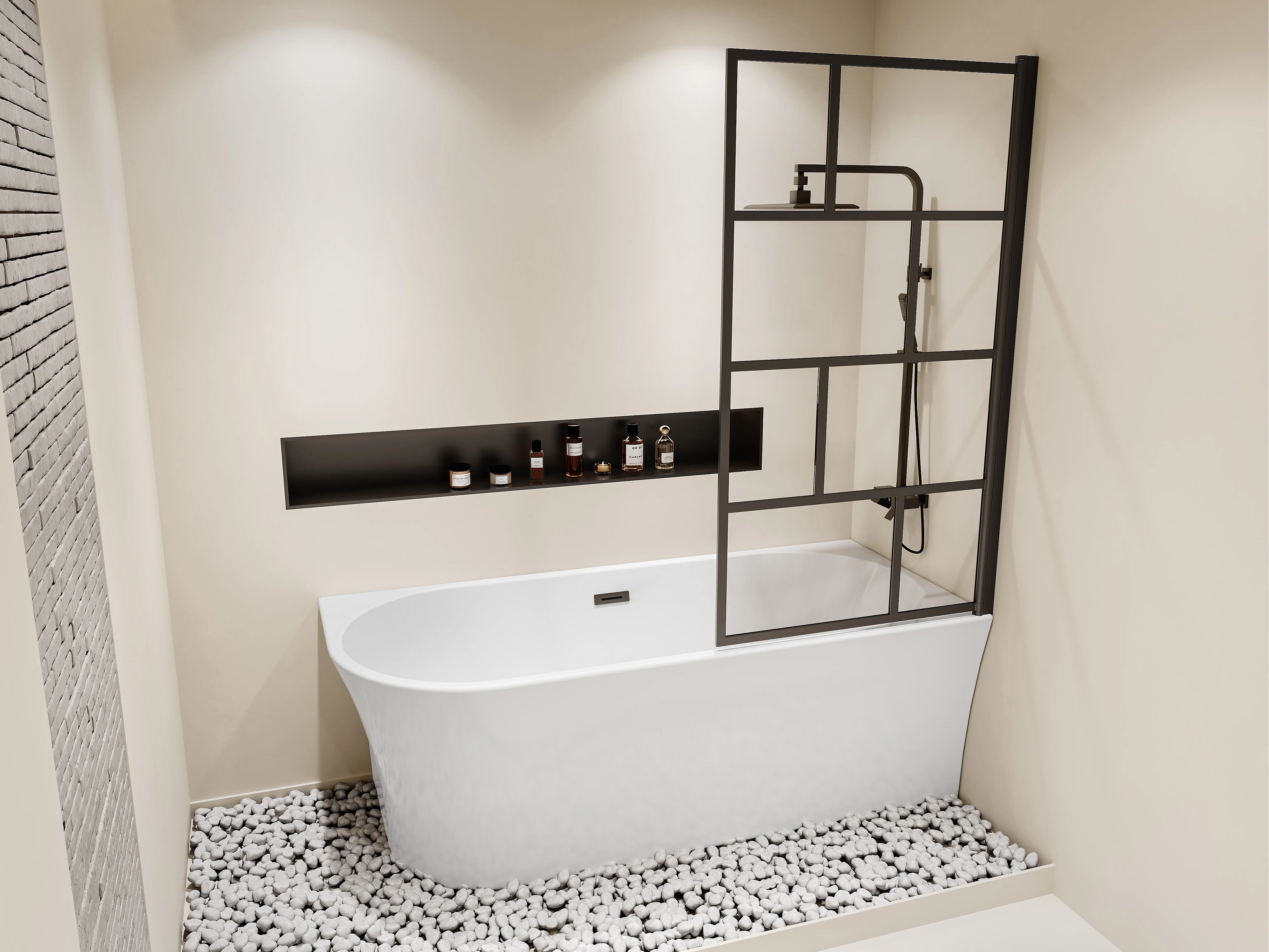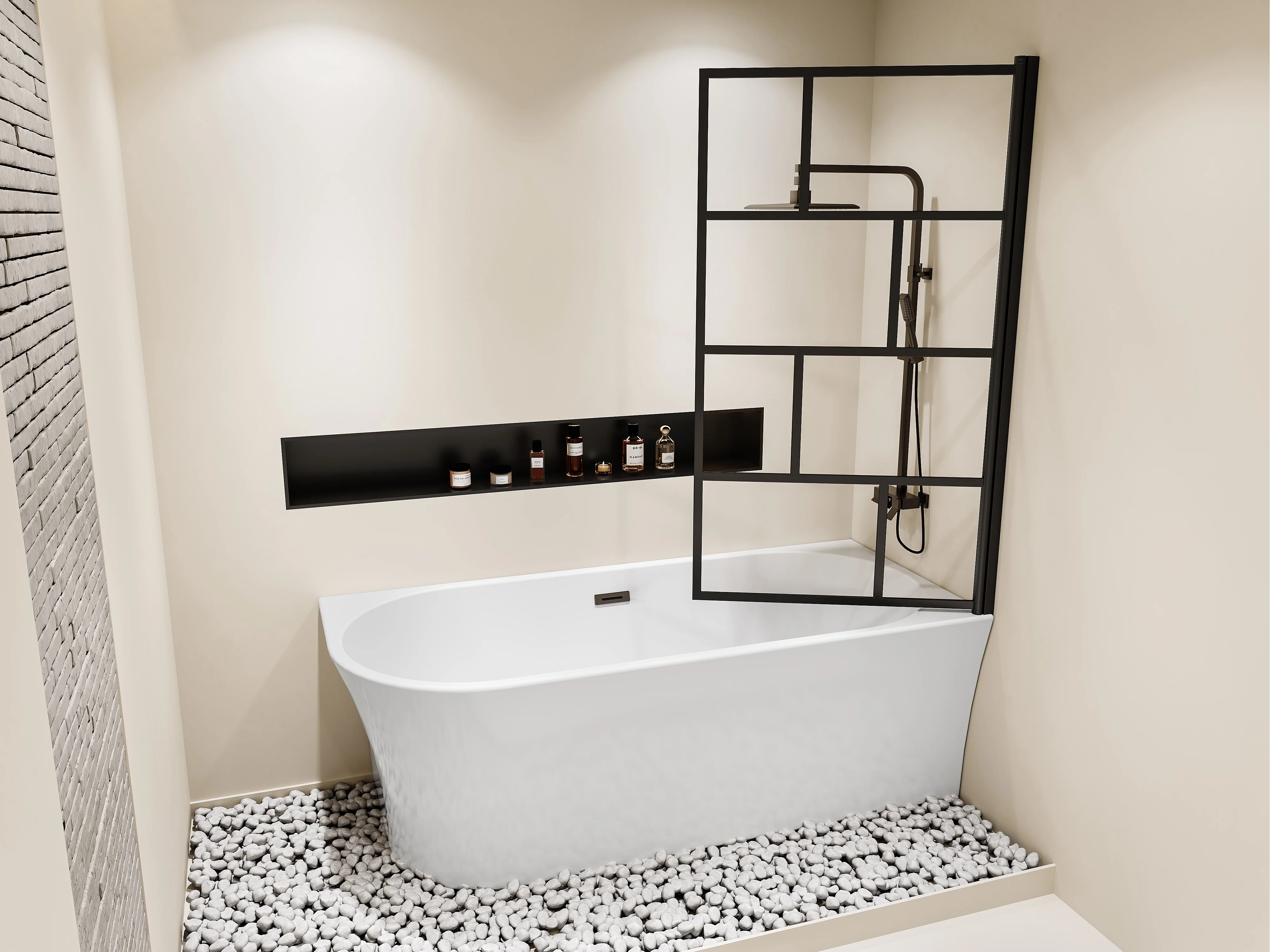 Baignoire douche blanche avec pare baignoire pivotant - 201 L - Angle droit - PONTICOLA