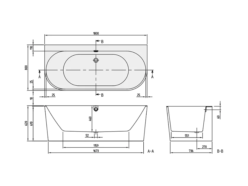 Baignoire îlot 180 x 80 VILLEROY & BOCH Oberon 2.0 blanc brillant