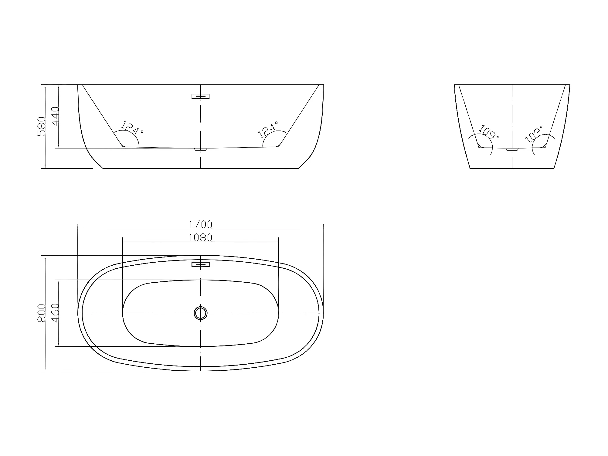 Baignoire îlot - 238L - 170 x 80 x 58 cm - Noire - Acrylique - NICA