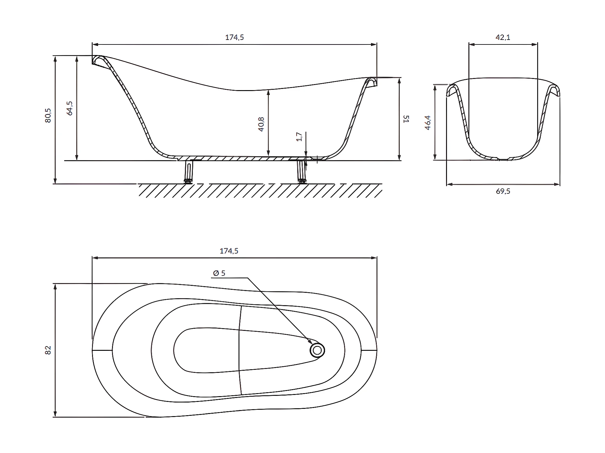 Baignoire îlot OMNIRES ATENA M+ 175X82 CM couleur : blanc finition : brillant