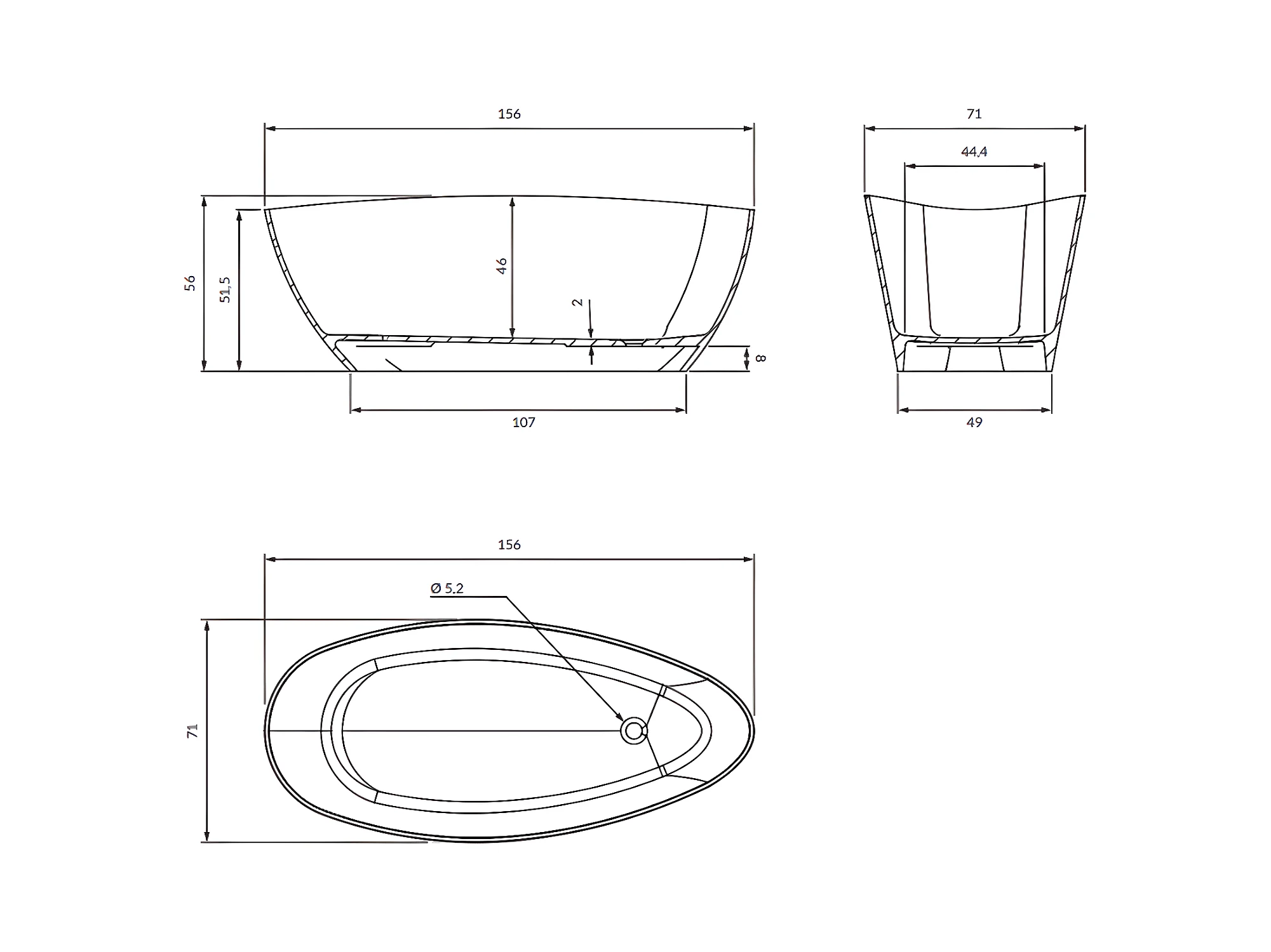 baignoire îlot OMNIRES BARCELONA M+ 156X71 CM couleur : blanc finition : brillant