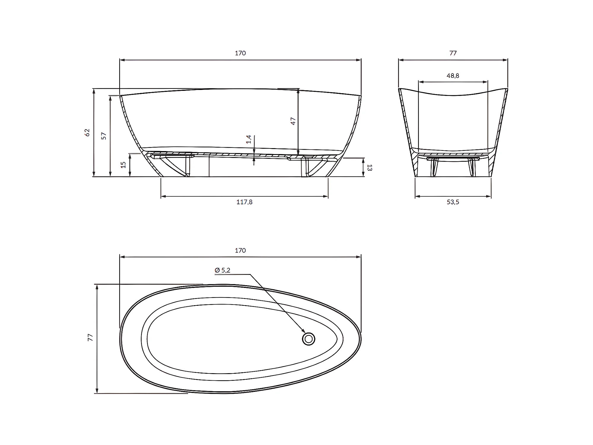 baignoire îlot OMNIRES BARCELONA M+ 170X77 CM couleur : blanc finition : mat