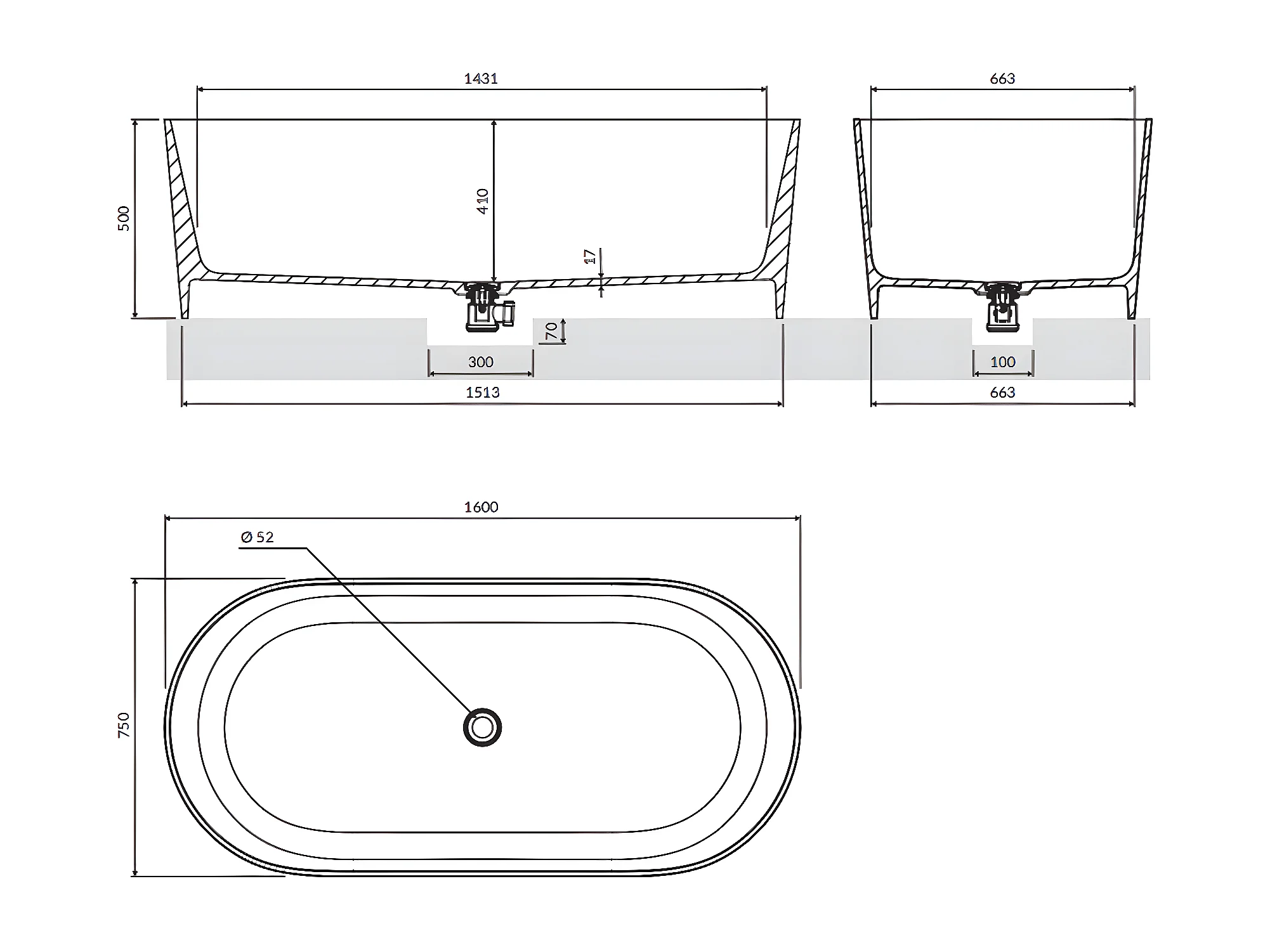 baignoire îlot OMNIRES OVO M+ 160X75 CM couleur : bleu finition : mat bonde et siphon inclus