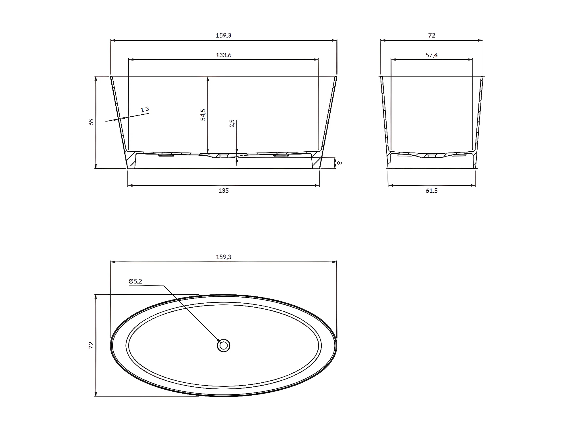 baignoire îlot OMNIRES ROMA M+ 159X72 CM couleur : blanc finition : mat