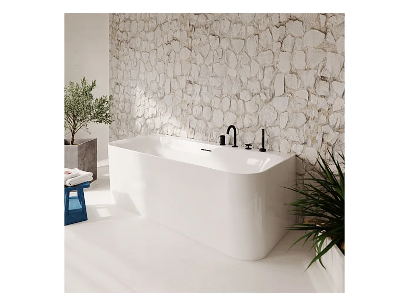 Baignoire murale semi-îlot VILLEROY & BOCH Loop & Friends avec bonde blanche et trop-plein chromé