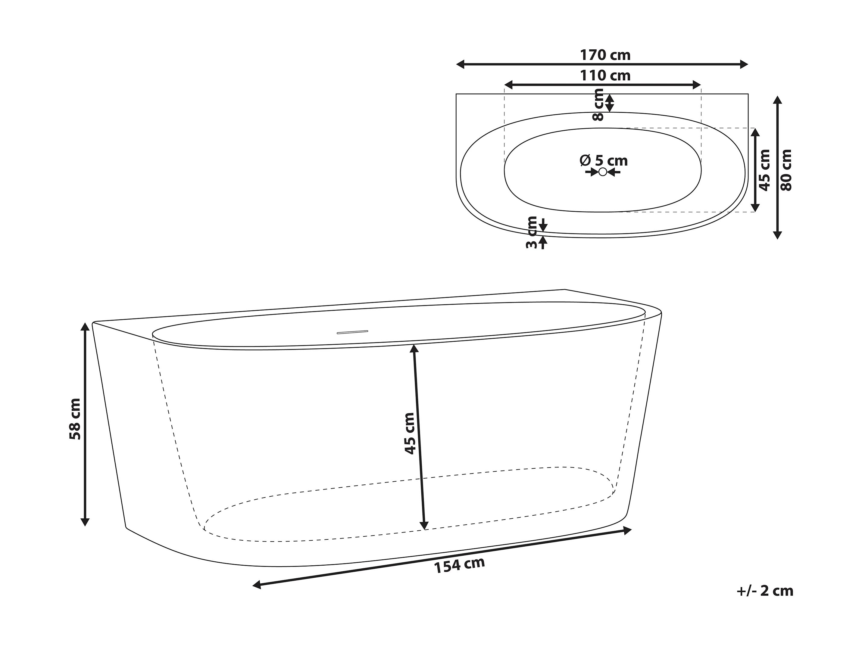 Baignoire PARNAIBA 170 x 80 cm Blanc