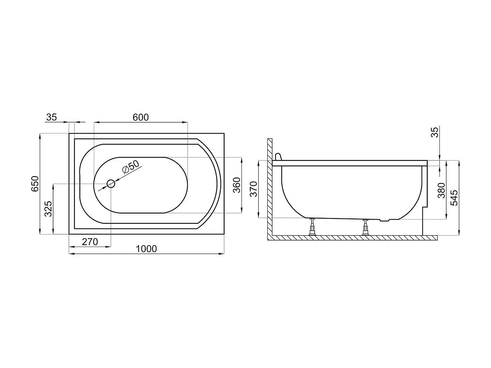 Baignoire rectangulaire 100x65 MINI acrylique blanc + avec Tablier + Pieds + Vidage à chromé