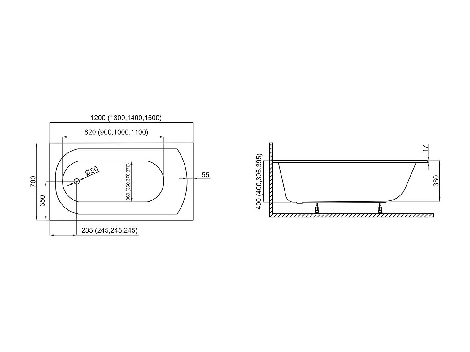 Baignoire rectangulaire 120x70 CLASSIC SLIM acrylique blanc + Habillage en polystyrène (4 cm) + Pieds + Vidage à chromé