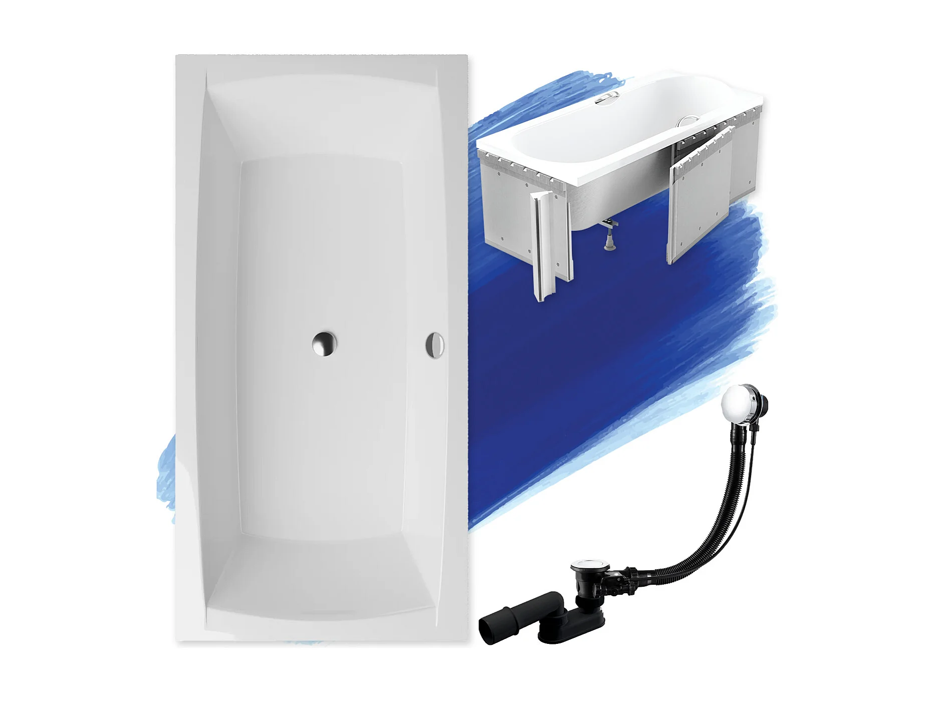Baignoire rectangulaire 140x70 APRI acrylique blanc + Habillage en polystyrène + Pieds + Vidage à chromé