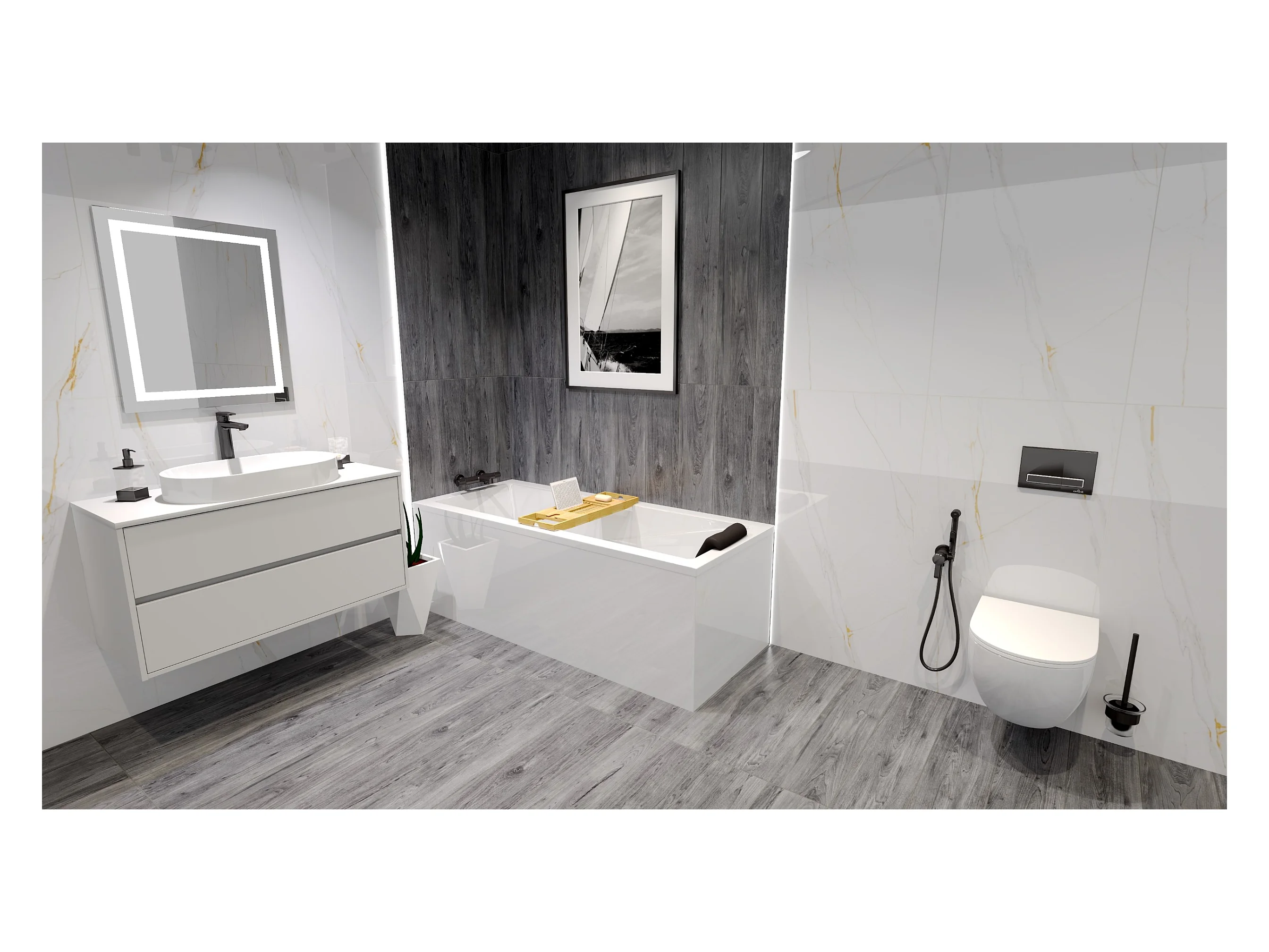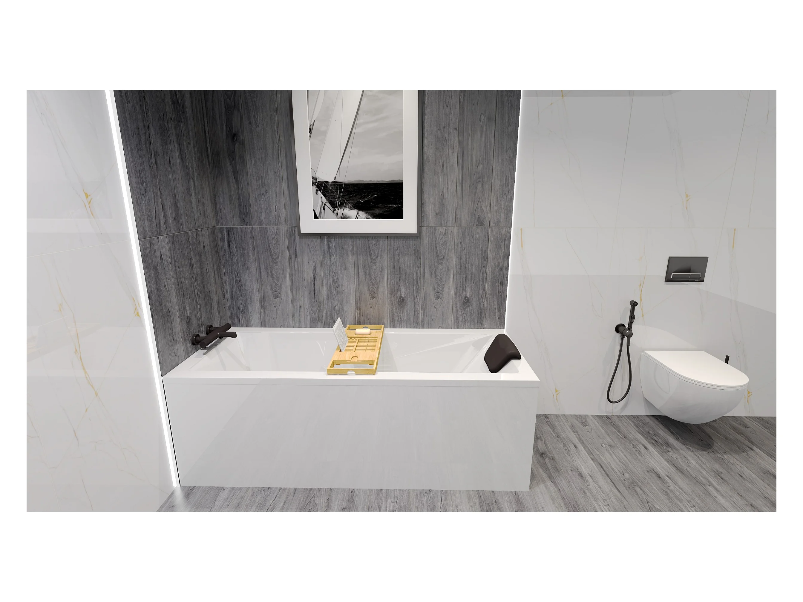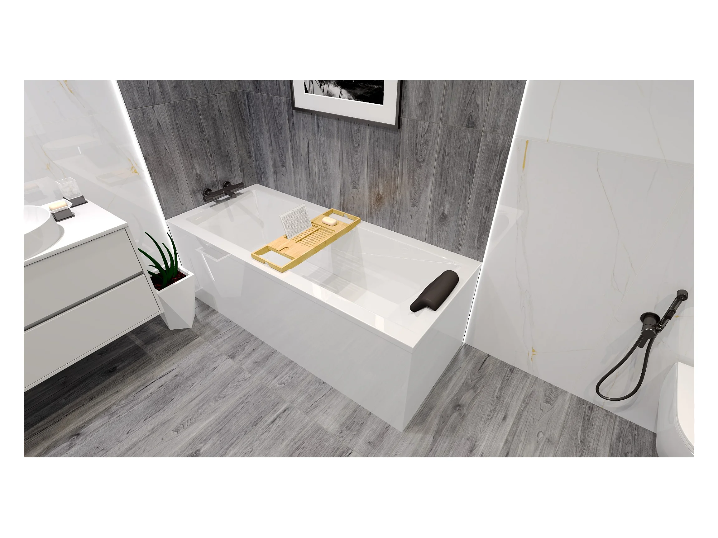 Baignoire rectangulaire 150x70 MODERN acrylique blanc, sans Habillage + Repose Tête + Pieds + Vidage à chromé