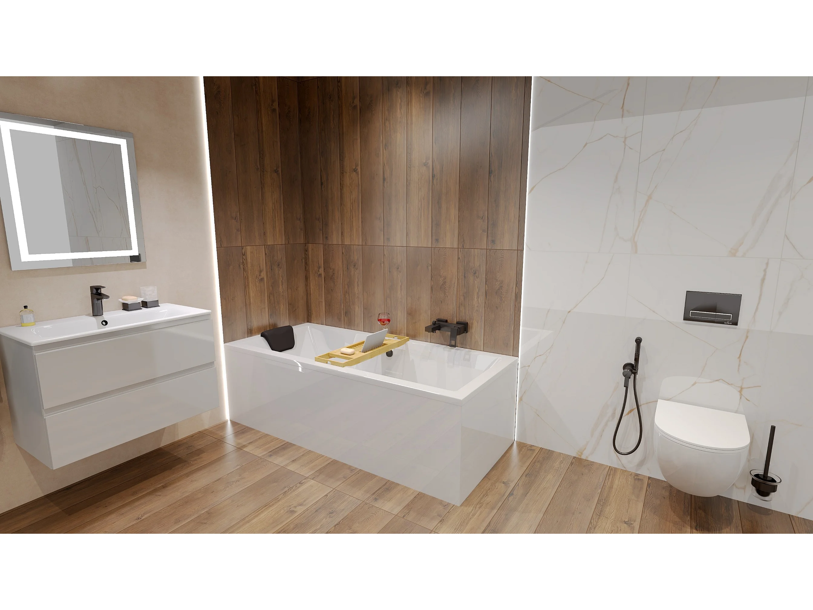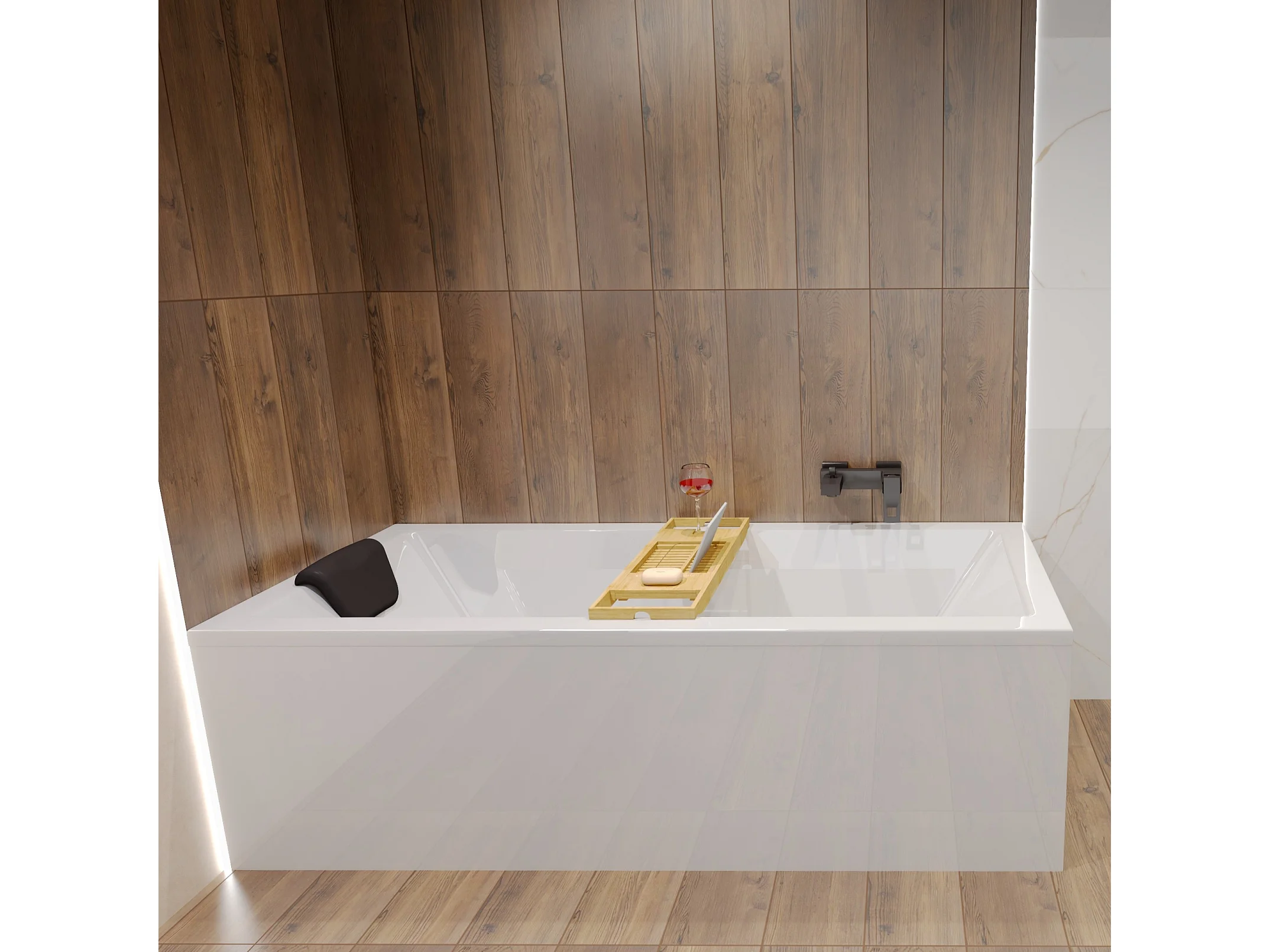 Baignoire rectangulaire 155x70 QUADRO acrylique blanc, sans Habillage + Repose Tête + Étagère bambou + Pieds + Vidage à chromé