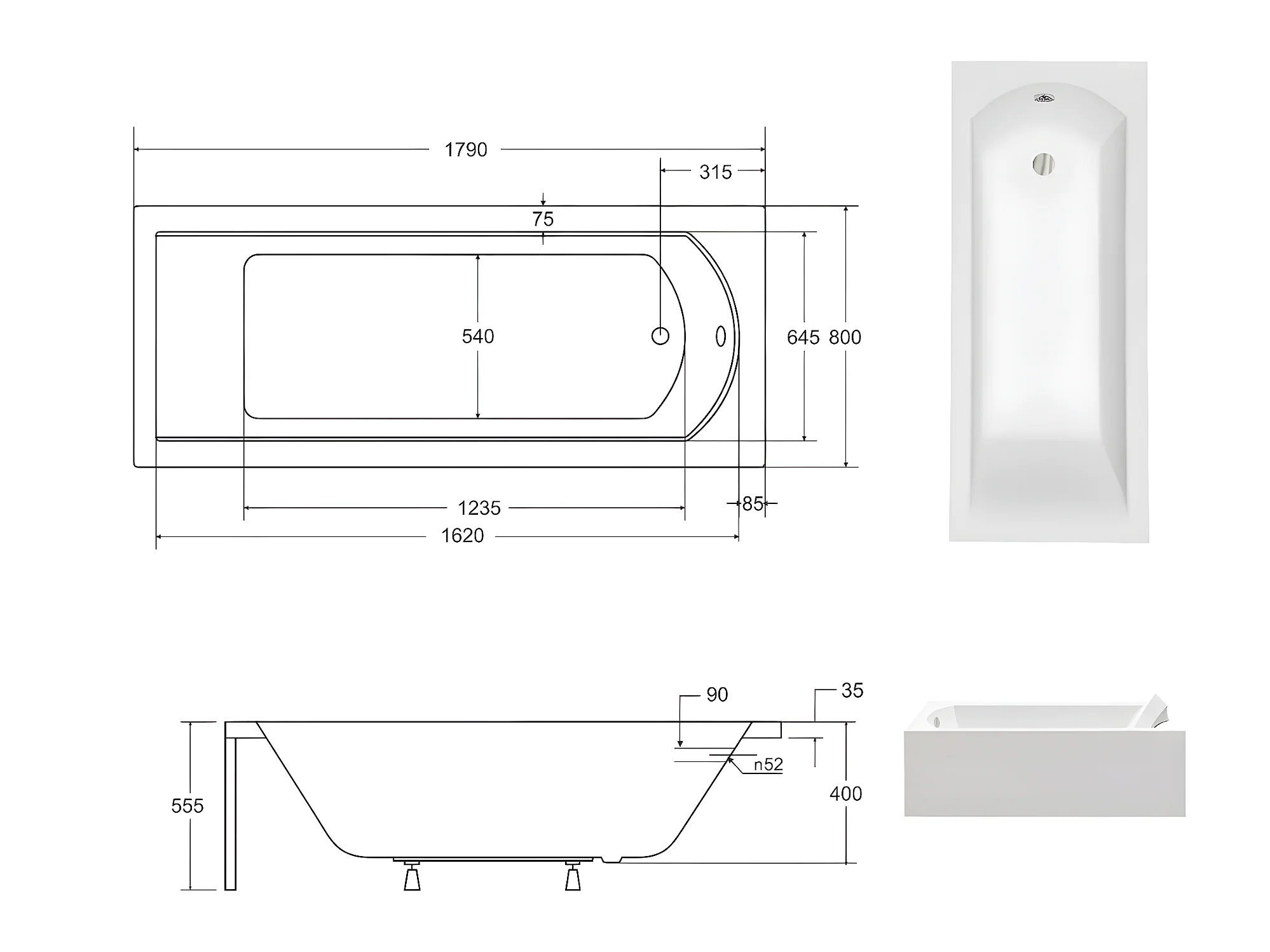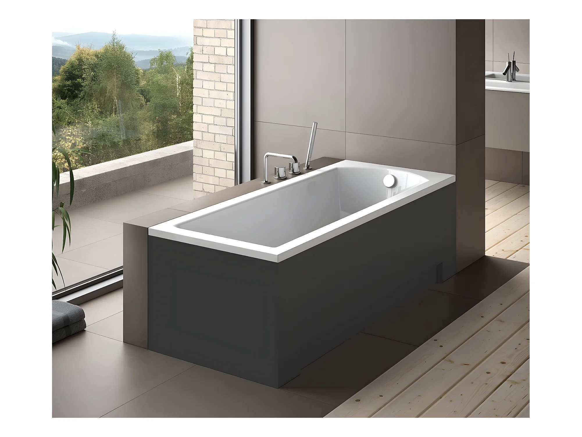 Baignoire rectangulaire + tablier noir + repose tête - SHEA - 180 x 80 cm