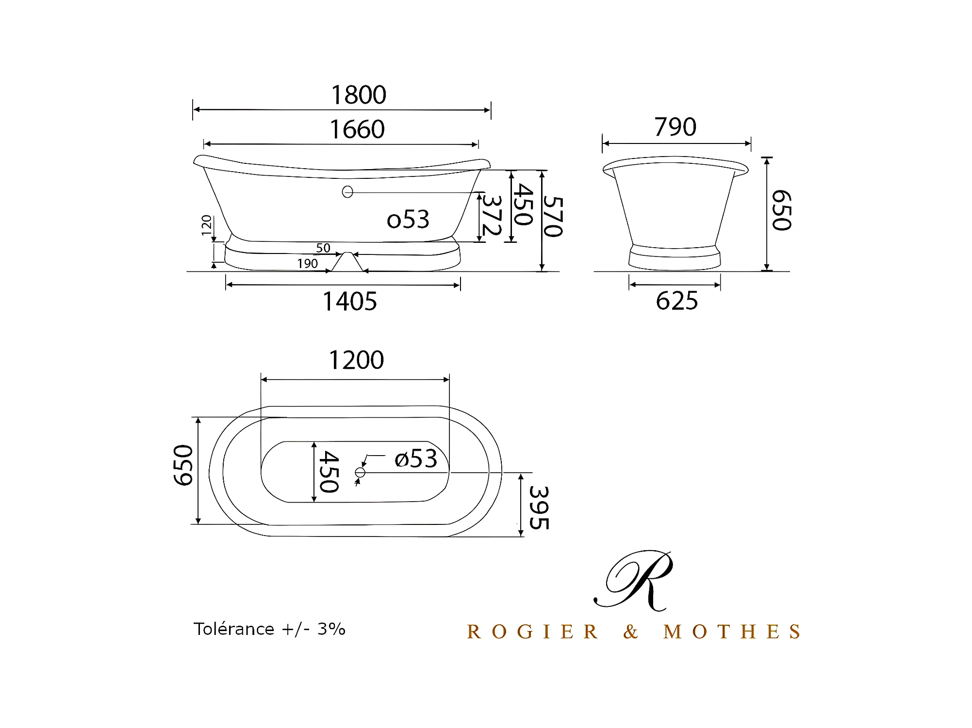 Baignoire sur socle en fonte émaillée SOUTHPORT Noire 180 cm Peinture noire (baignoire et socle)