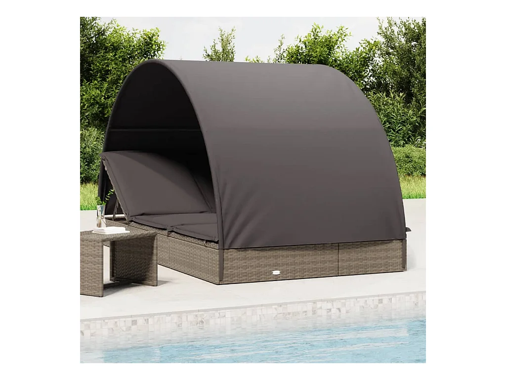Bain de soleil 2 places avec toit rond gris 211x112x140 cm REO46708